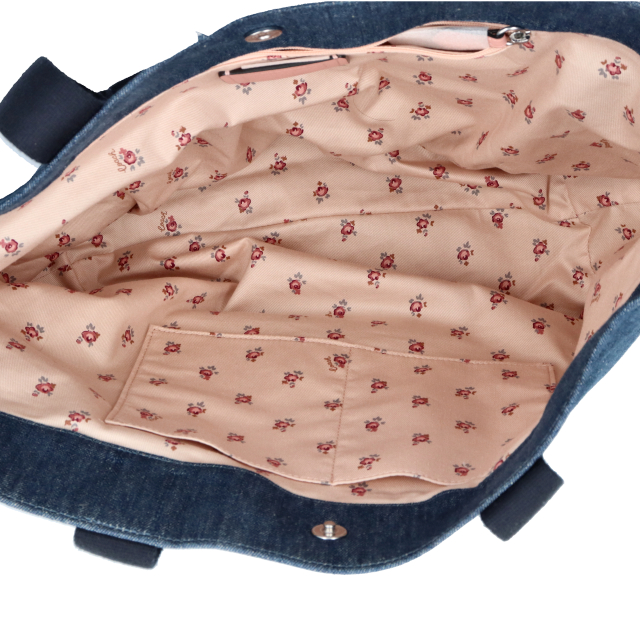 未使用品。ブルーデニムが可愛いトートバッグ。大容量で使い勝手抜群です。ファッションやシーンを選ばずお使いいただけます。