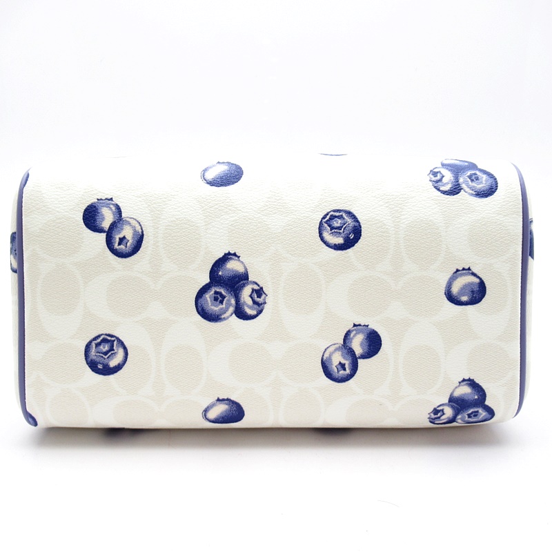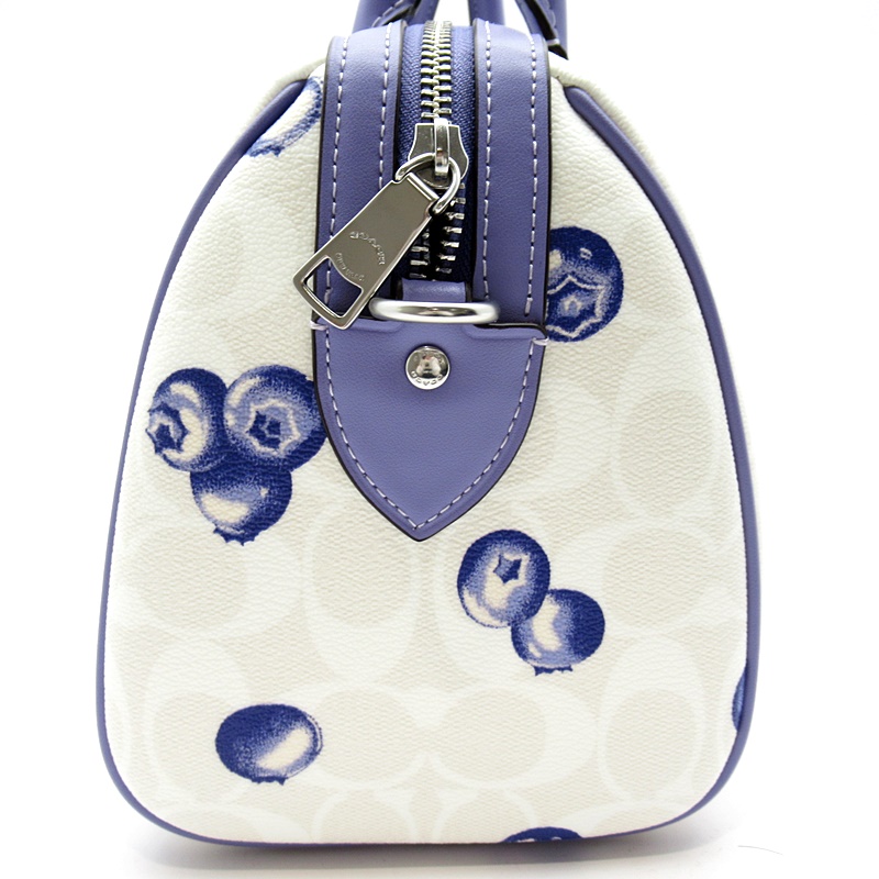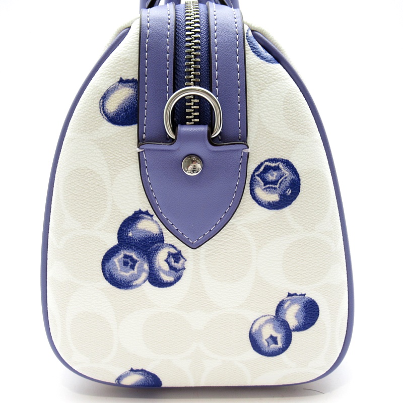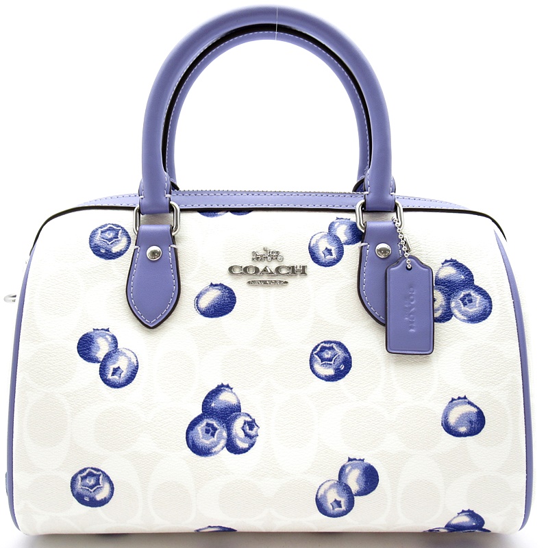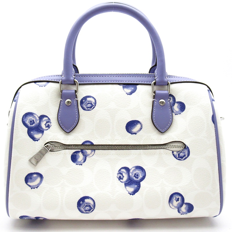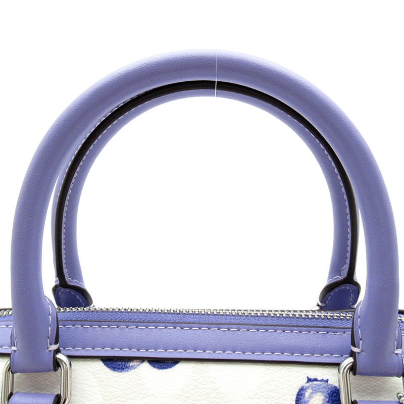 USED品。ブルーベリープリントのローアン サッチェル・シグネチャー。ストラップもついており2WAYで使用可能です。