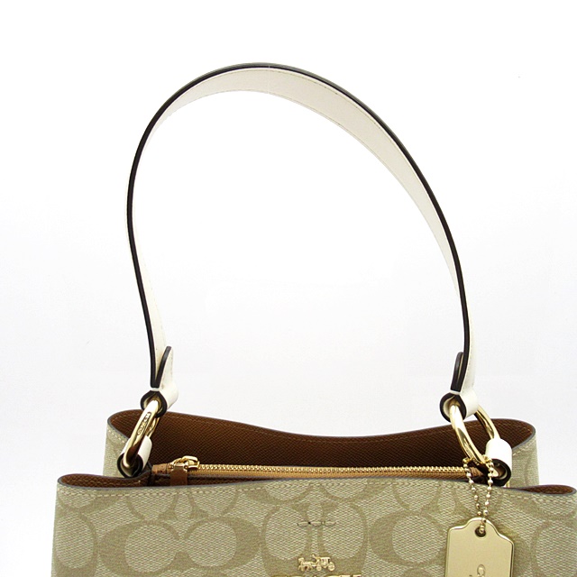 USED品。落ち着いた色合いのシグネチャーがエレガントな、コーチの2WAYバッグです。取り外し・調節可能なストラップで、ハンドバッグ、ショルダーバッグ、斜め掛けバッグとしてご使用頂けます。