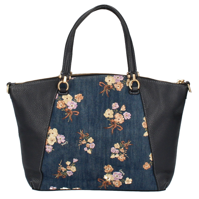 USED品。キュートでエレガントなブーケのプリントが施された「PRAIRIE SATCHEL」。持ち手部分のリングパーツやメタルロゴがラグジュアリーな印象。普段使いに最適なサイズ感に機能的なポケットが魅力の一品。取り外しができるショルダーストラップが付属した2WAY仕様も嬉しいポイントです。