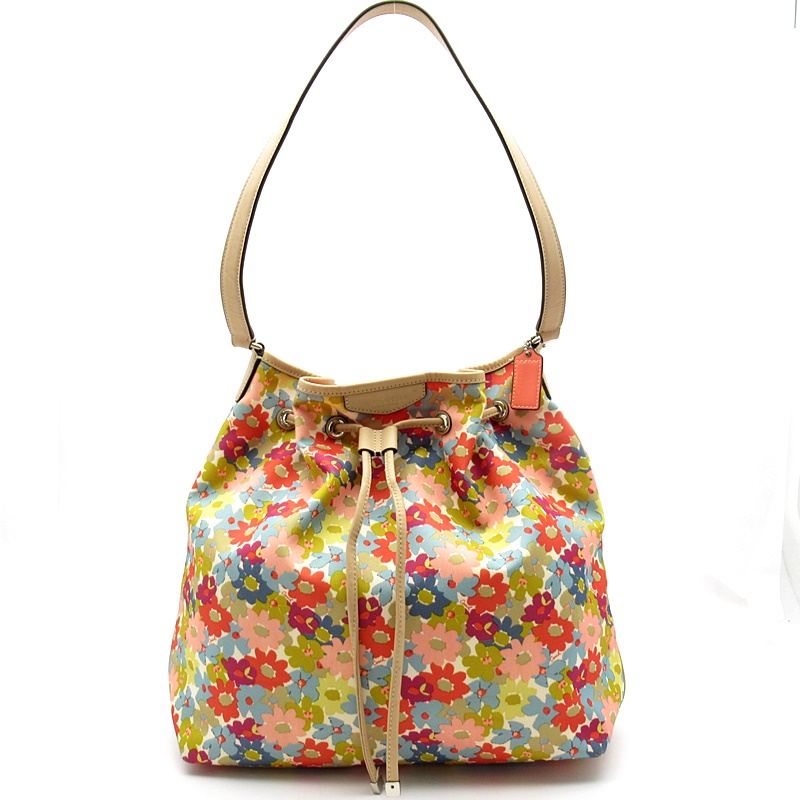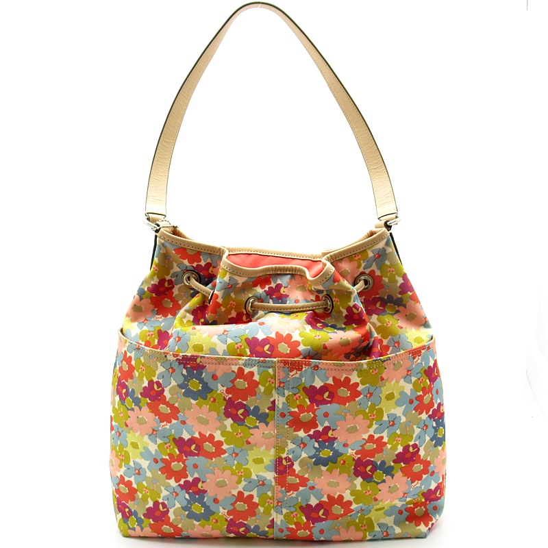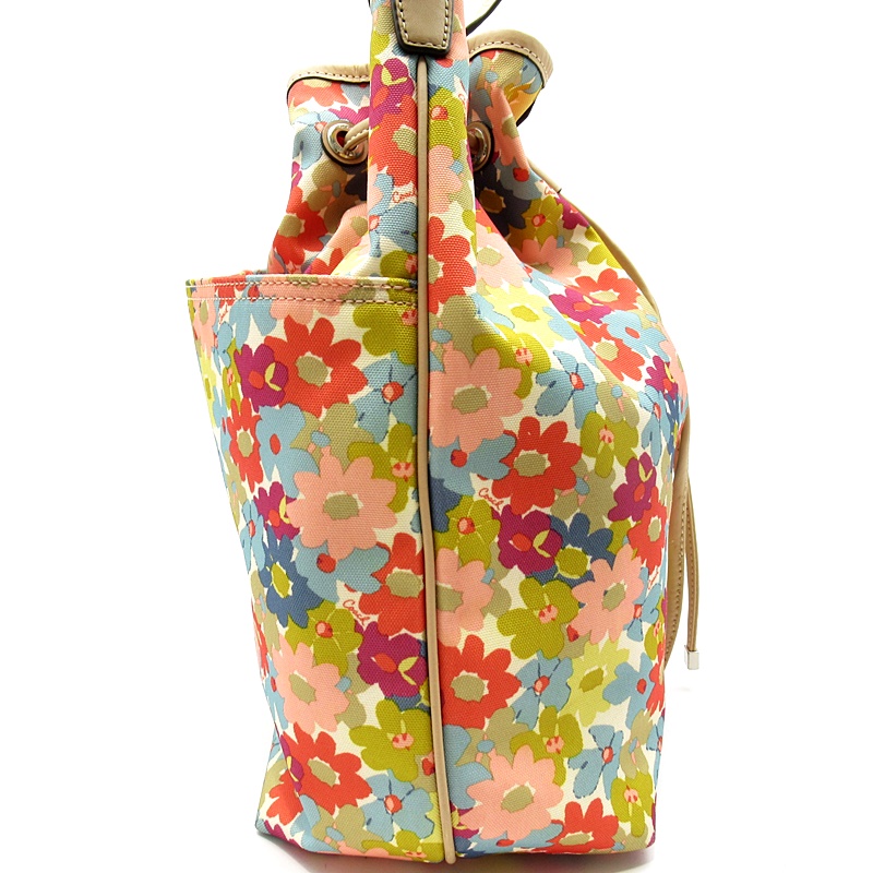 USED品。フラワープリントの2WAYバッグ。外側に大きなポケットが付いており、使いやすいお品物です。