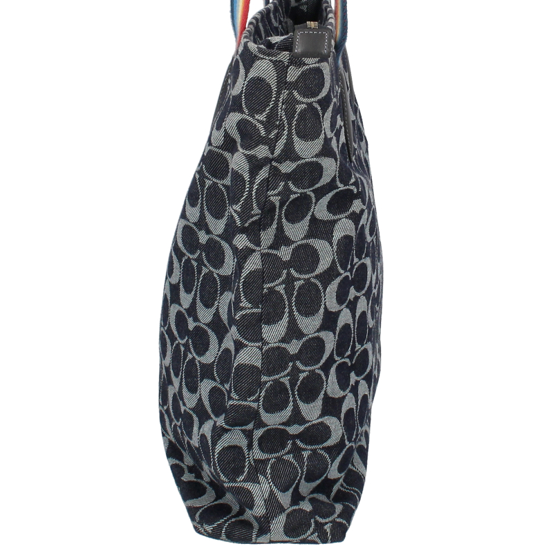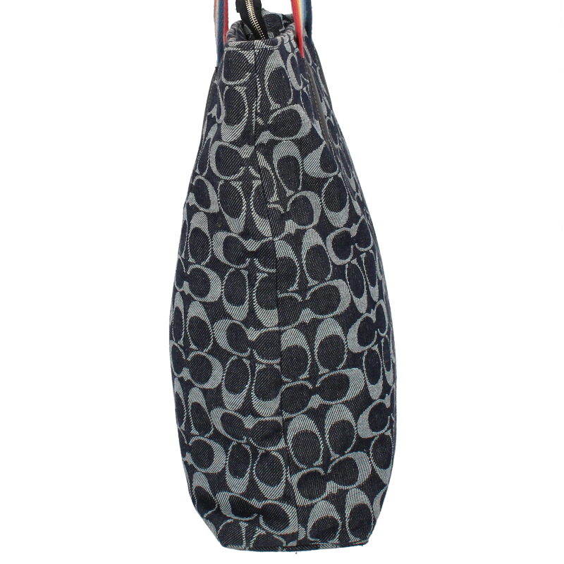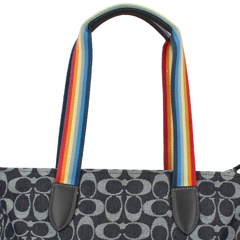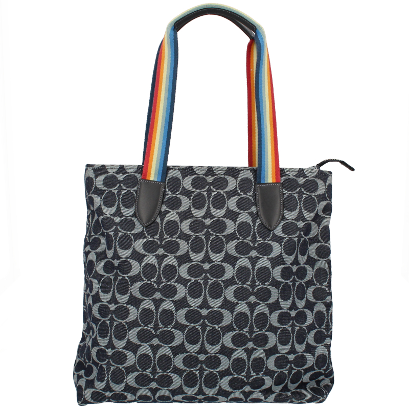 USED品。バッグのハンドルにレインボーをプリントしたトートバッグ。ハンドルとバッグの色が色違いなのが、アクセントがあっておしゃれです。