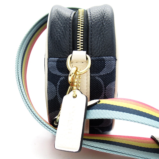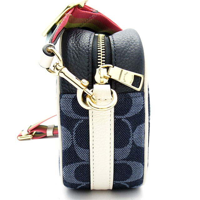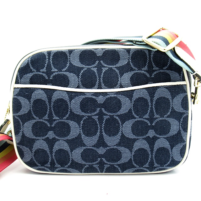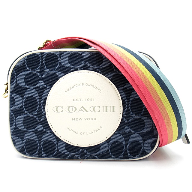 USED品。デニムのコーチのシグネチャーに白い大きなコーチのロゴがオシャレなミニサイズの2WAYショルダーバッグです。ショルダーは長さ調節可能で、ワンショルダーやななめ掛けなど、用途に合わせてアレンジが楽しめます。