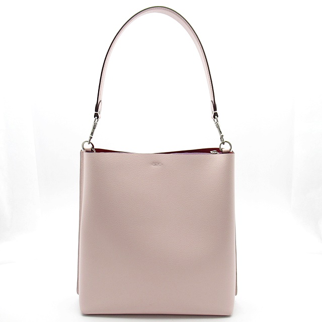 USED品。すっきり収納しやすいバケツ型バッグ。開け閉めしやすいマグネット開閉に、長財布が入る2つのオープンポケットのほか、中央には貴重品が入るジップポケット付き。