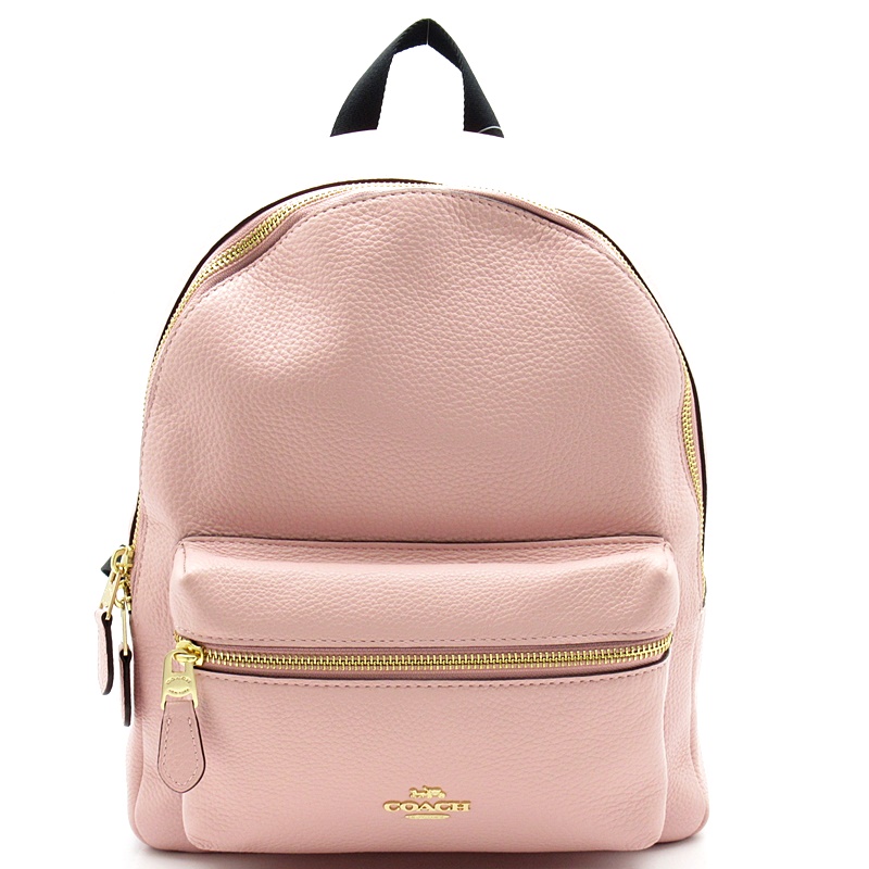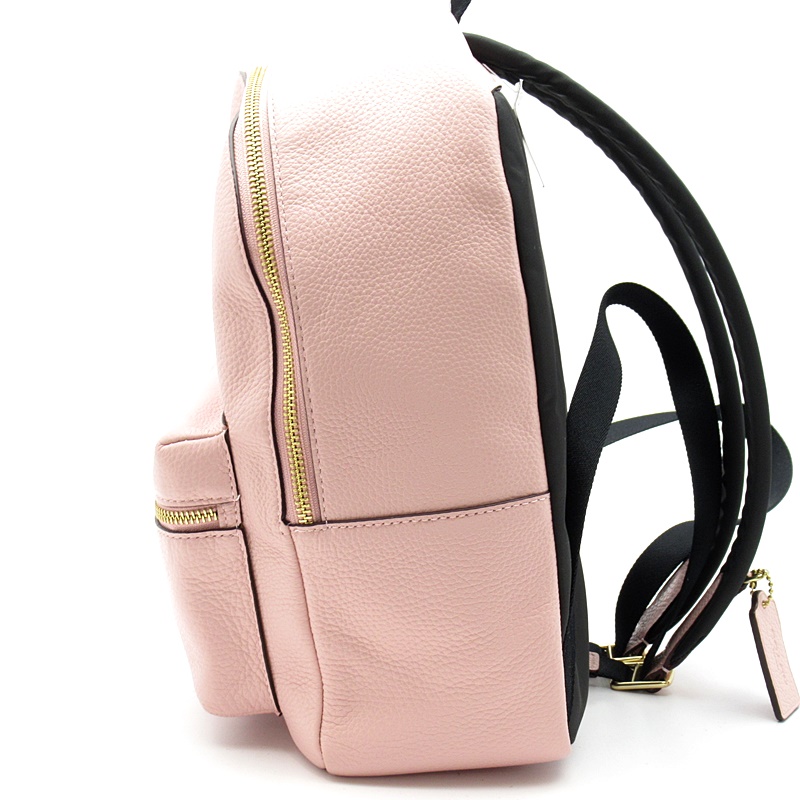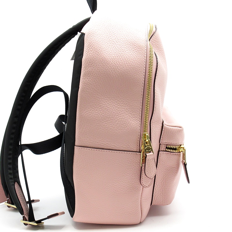 未使用品。フレッシュピンクの柔らかなレザーにフロントのロゴ金具がオシャレなリュックです。間口はダブルジップファスナー開閉、コーチの長財布もゆったり入るメイン収納にフロントや内部にもポケットが付いて小物の整理にとっても便利。