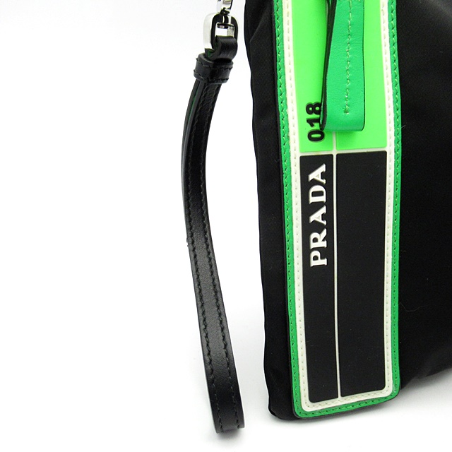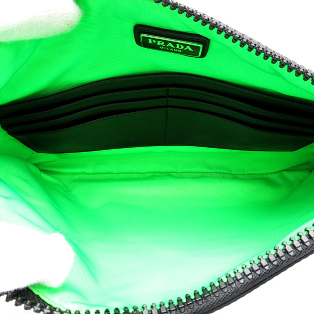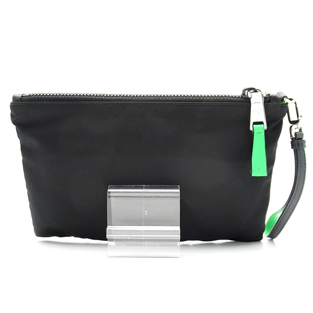 USED品。シックなブラックのカラーにネオンカラーがワンポイントになったクラッチバッグ。内側にカードホルダーが6つあり、収納力も抜群です。
