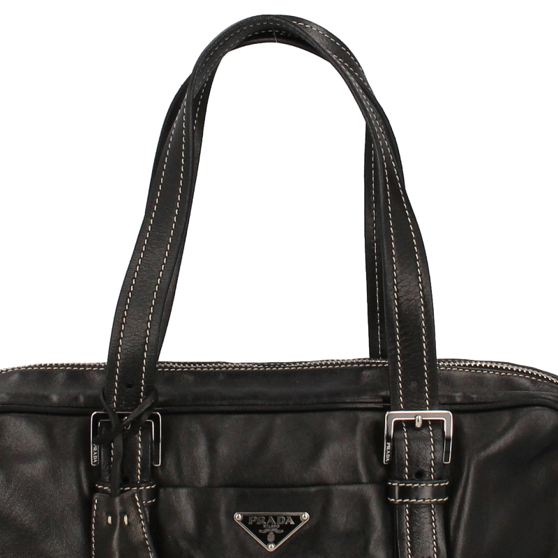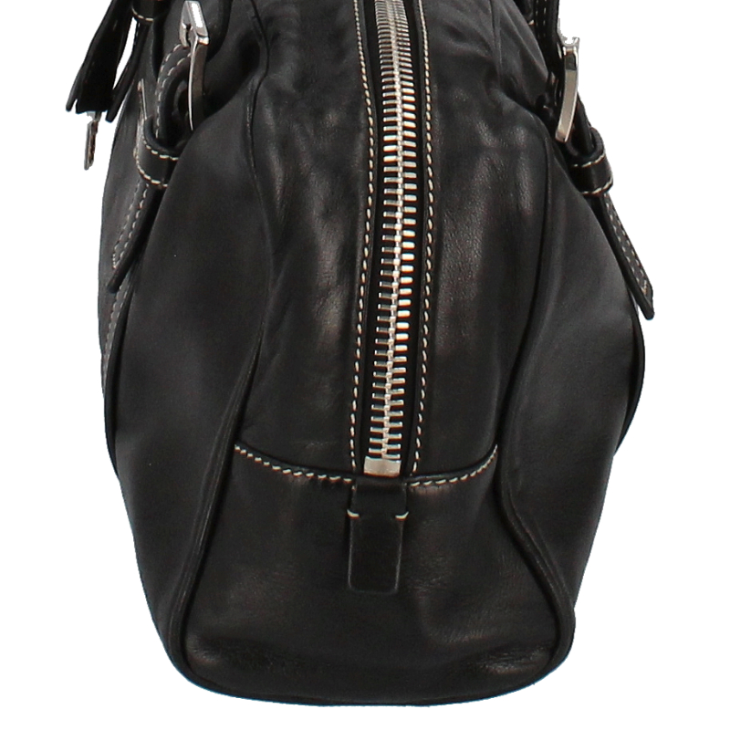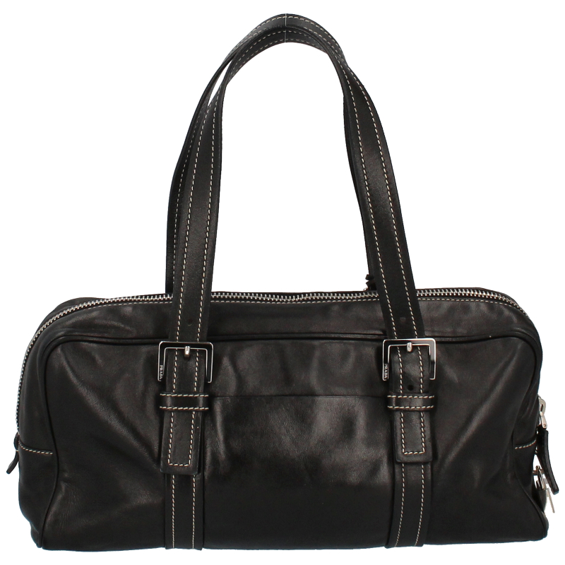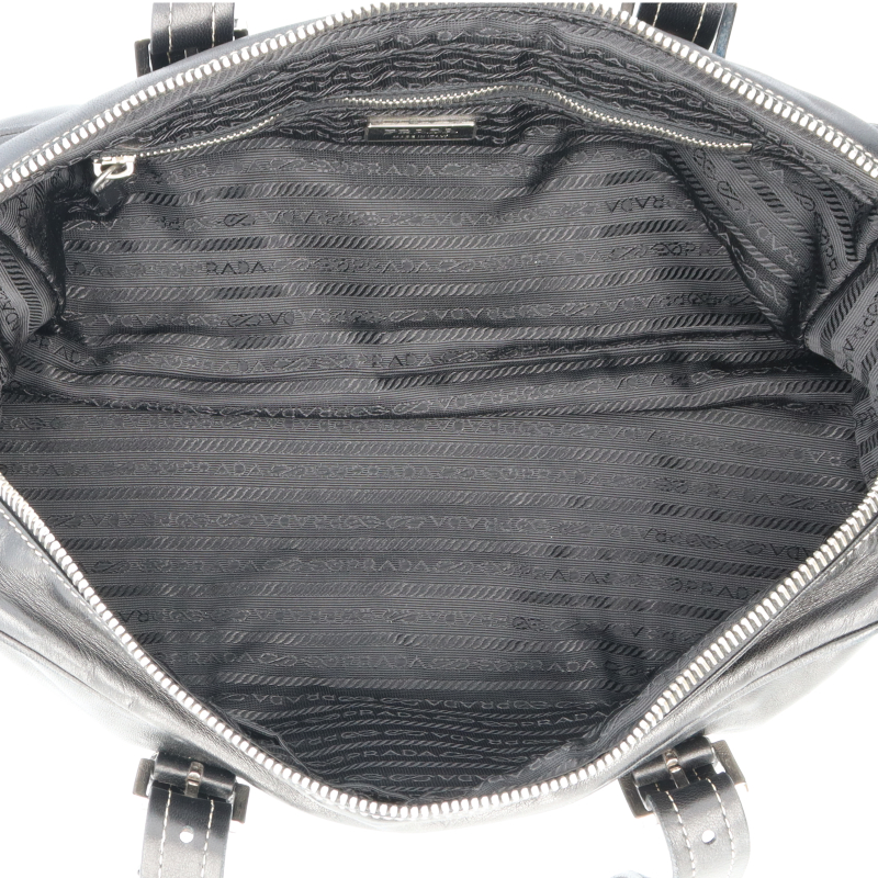 USED品。プラダのボストンバッグとなります。ポケット前後ろ1つずつ、サイズ感も普段遣いに最適な一品です。ファスナーが下まで入っているため、間口が空きやすいのがポイントです。