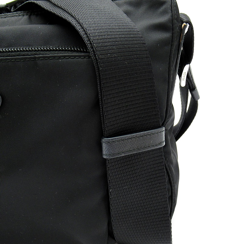 USED品。ナイロン素材のカジュアル感を保ちつつ、ナイロン素材のカジュアル感を保ちつつ、スクエアフォルムでカッチリとした印象を与えるショルダーバッグです。