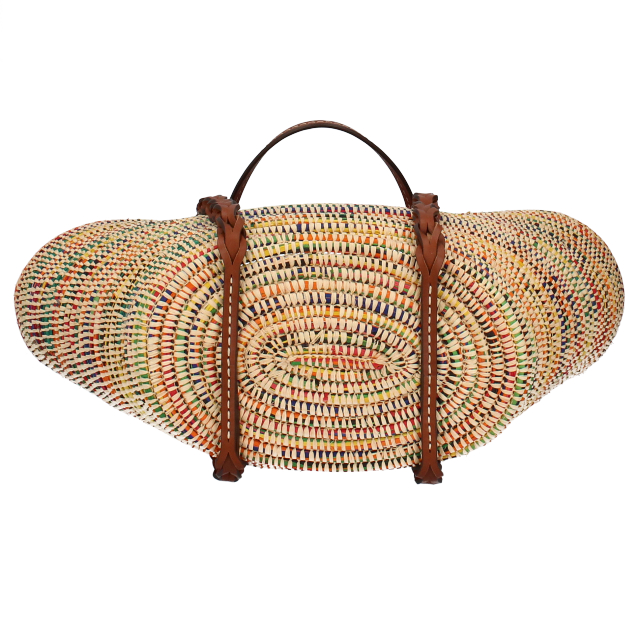 USED品。夏にぴったりな鮮やかなカラーと、かわいいフォルムで大容量のバスケット型バッグです。