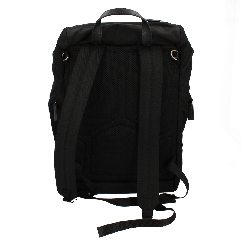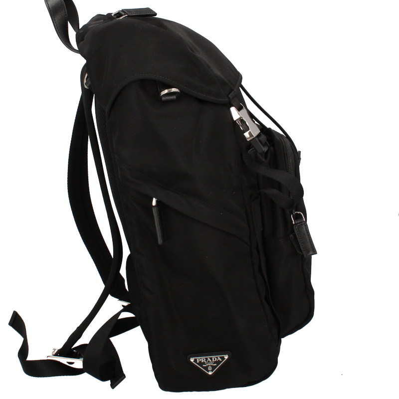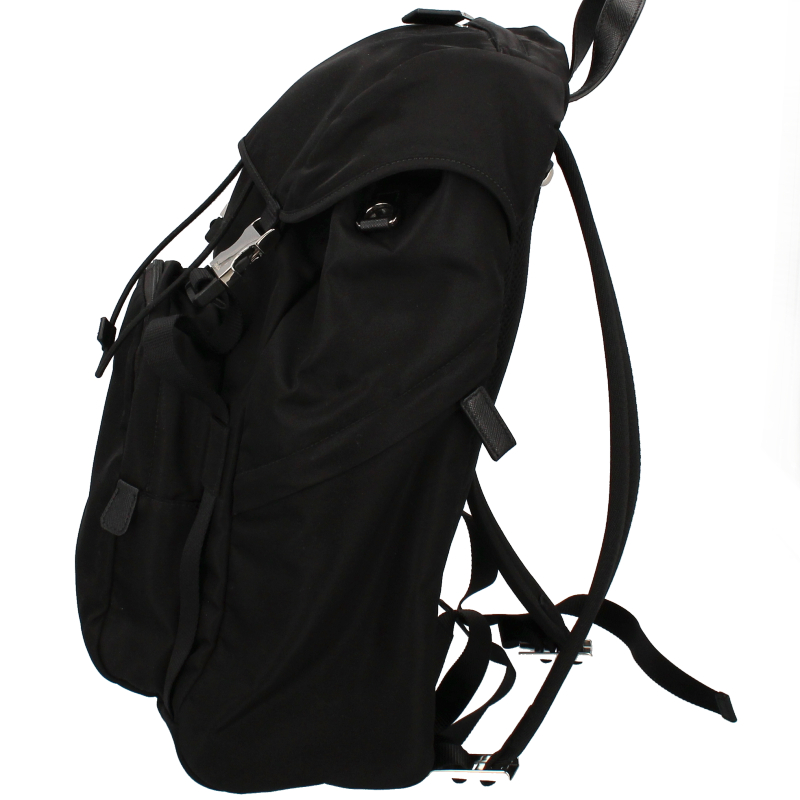 USED品。カジュアルなデザインながらもどこか高級感を感じさせるプラダの大きめのバックパックです。外側と両サイドにはファスナーポケットがあり、マチもしっかりあるため収納力は抜群です。