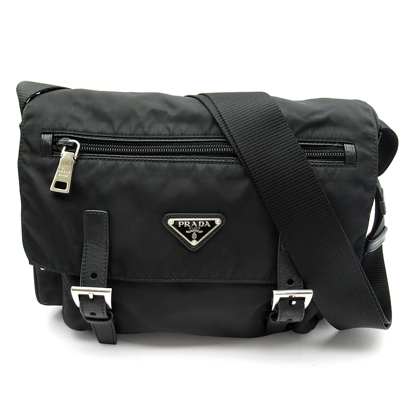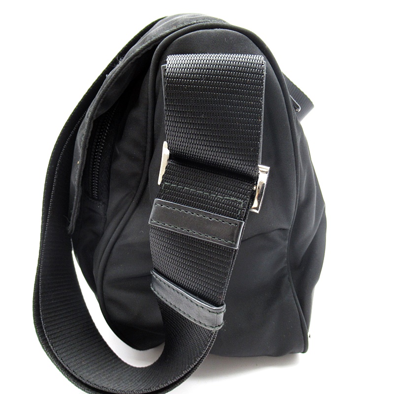 USED品。ナイロン素材のカジュアル感を保ちつつ、スクエアフォルムでカッチリとした印象を与えるショルダーバッグです。
