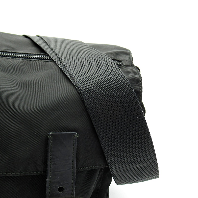 USED品。ナイロン素材のカジュアル感を保ちつつ、スクエアフォルムでカッチリとした印象を与えるショルダーバッグです。