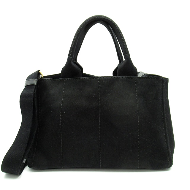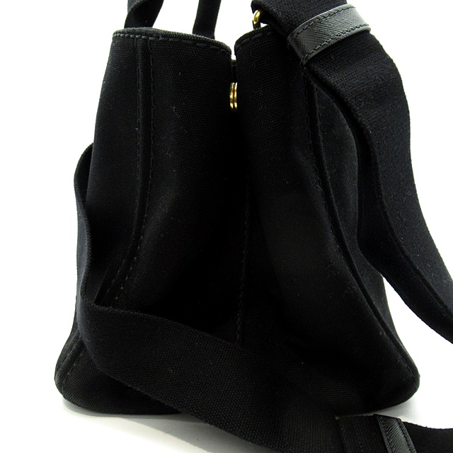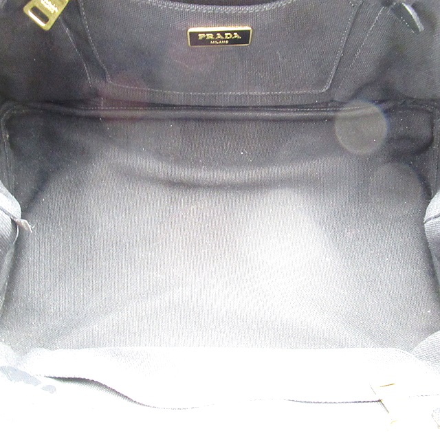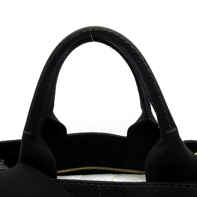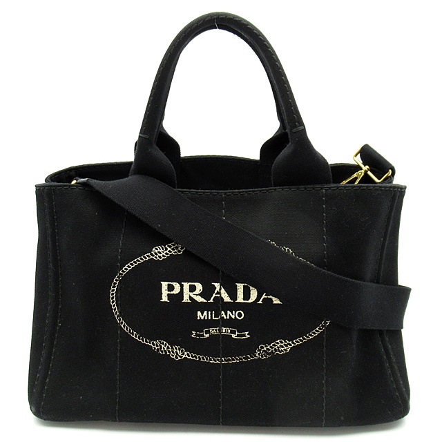 USED品。シンプルナチュラルなデザインが魅力のプラダのカナパトート。現在も絶大な人気を誇っています。正面に大きなロゴがデザインされていてブランド主張をしています。