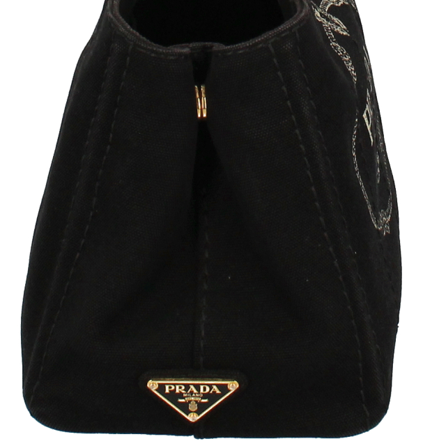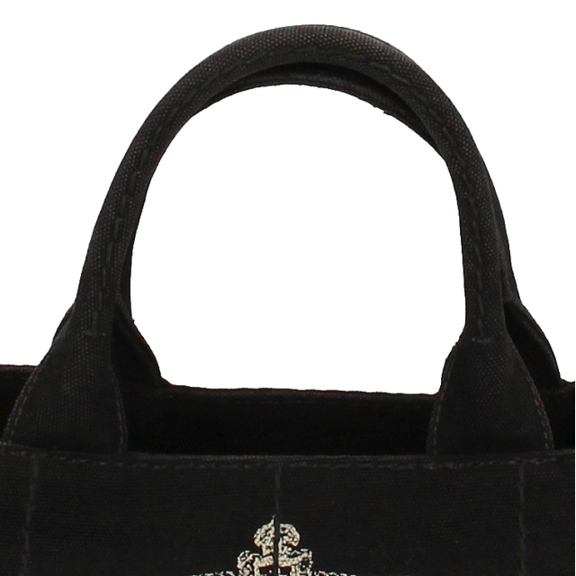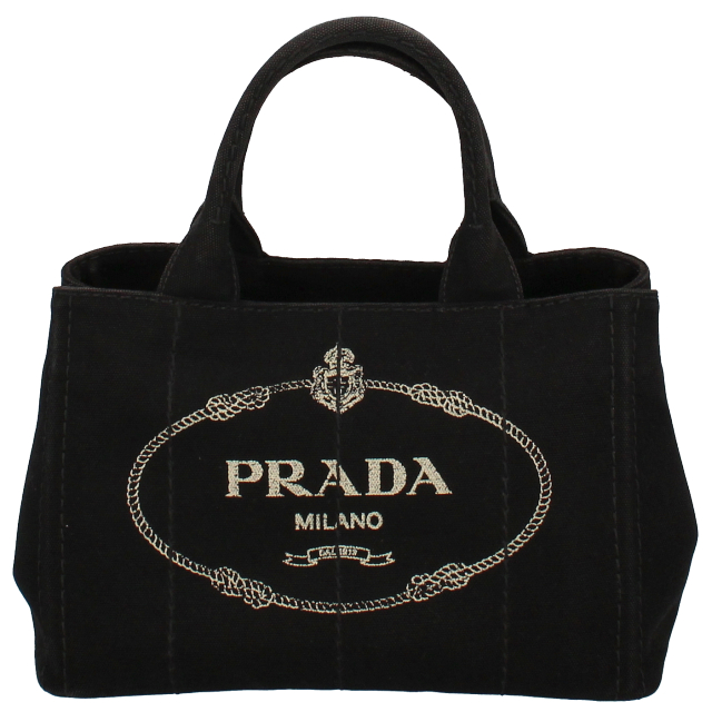 USED品。シンプルナチュラルなデザインが魅力のプラダのカナパトート。現在も絶大な人気を誇っています。正面に大きなロゴがデザインされていてブランド主張をしています。