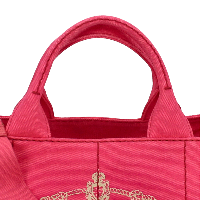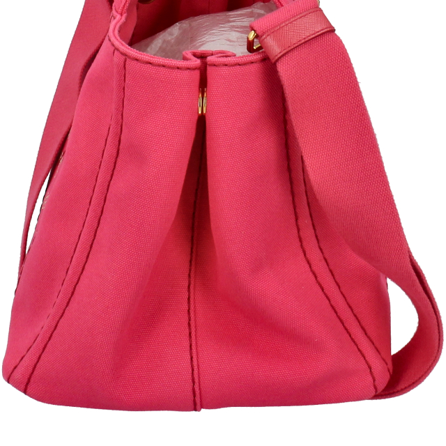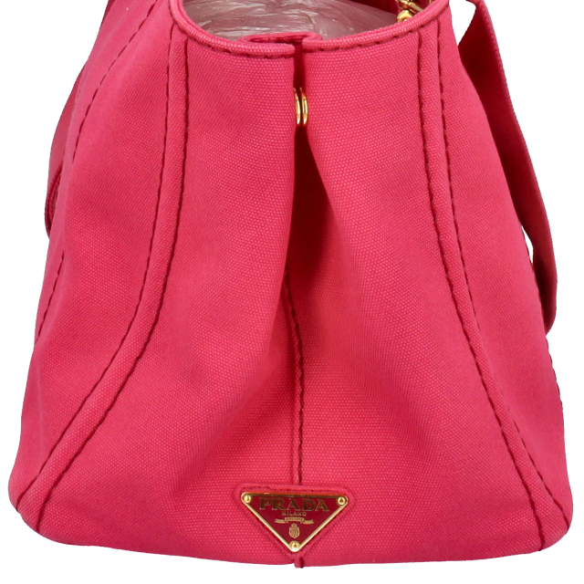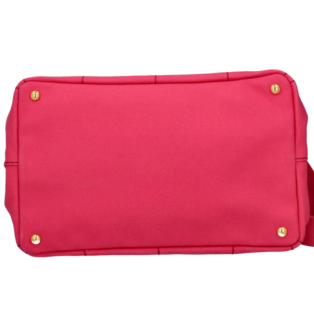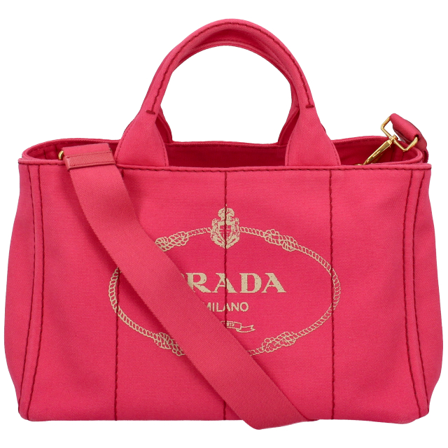 USED品。シンプルナチュラルなデザインが魅力のプラダのカナパトート。現在も絶大な人気を誇っています。正面に大きなロゴがデザインされていてブランド主張をしています。