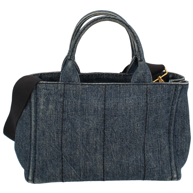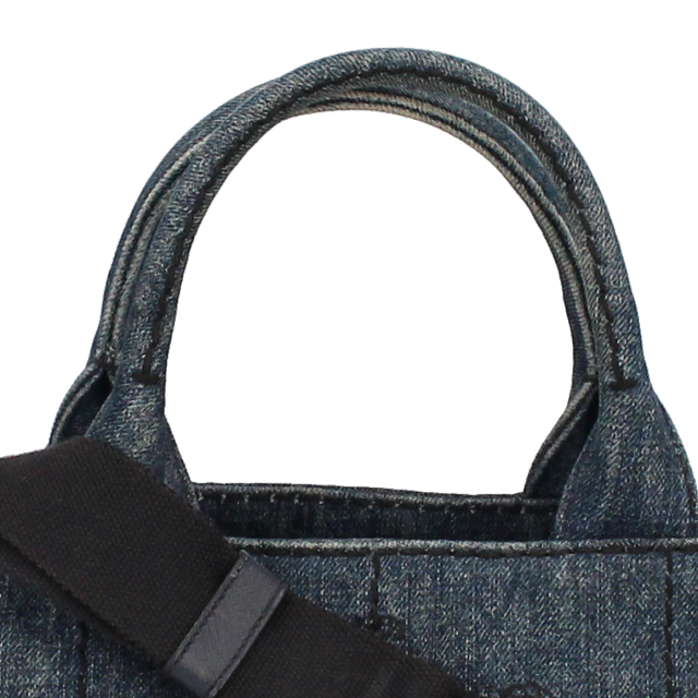 USED品。シンプルナチュラルなデザインが魅力のプラダのカナパトート。現在も絶大な人気を誇っています。正面に大きなロゴがデザインされていてブランド主張をしています。