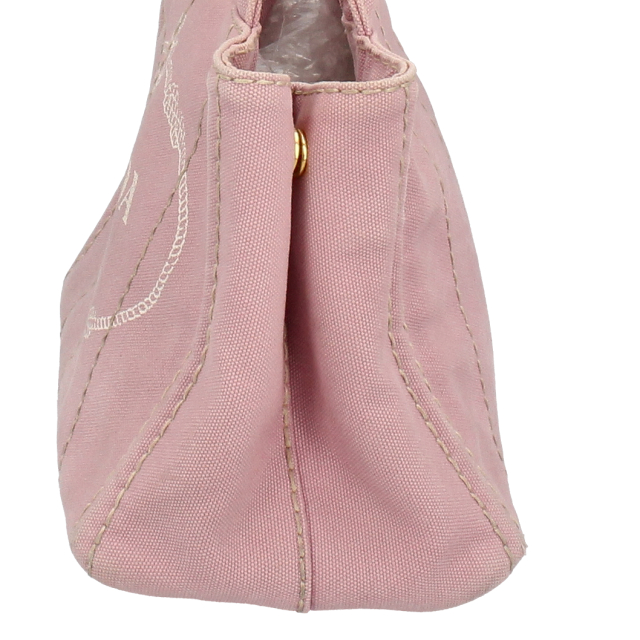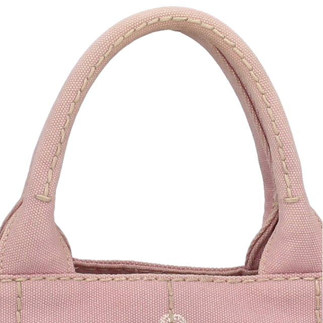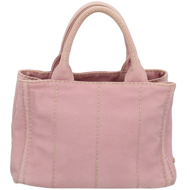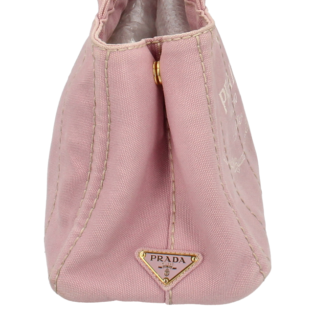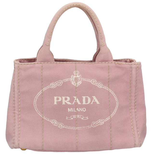 USED品。シンプルナチュラルなデザインが魅力のプラダのカナパトート。現在も絶大な人気を誇っています。正面に大きなロゴがデザインされていてブランド主張をしています。