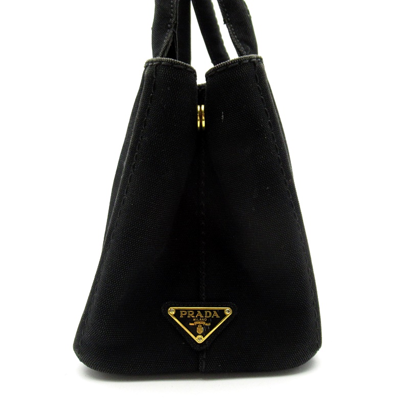 USED品。シンプルナチュラルなデザインが魅力のプラダのカナパトート。現在も絶大な人気を誇っています。正面に大きなロゴがデザインされていてブランド主張をしています。