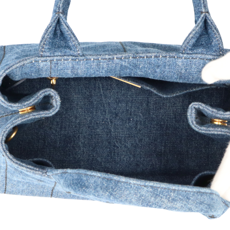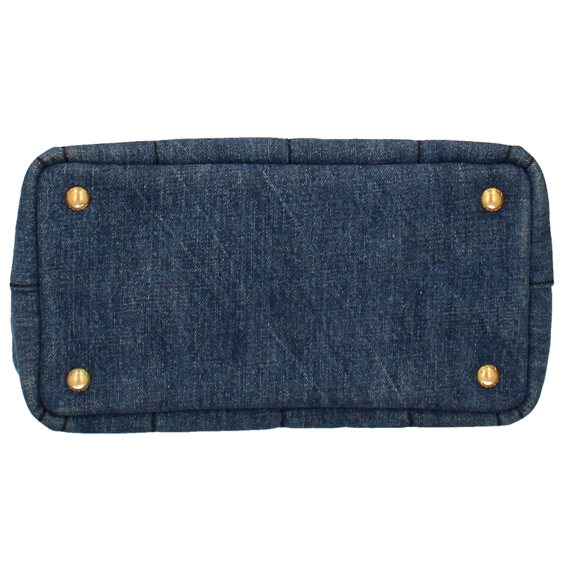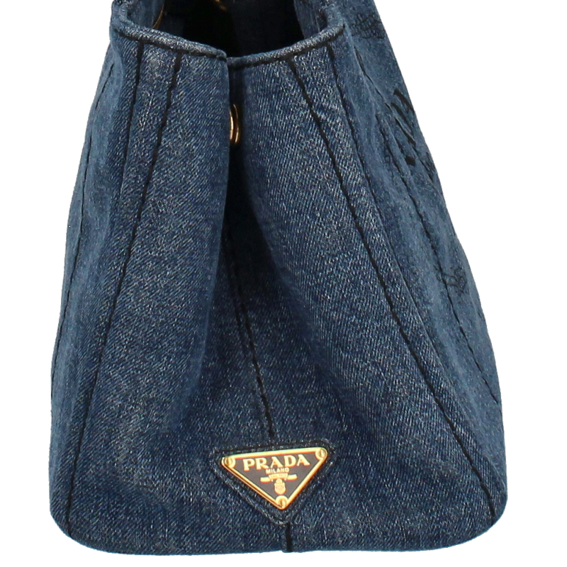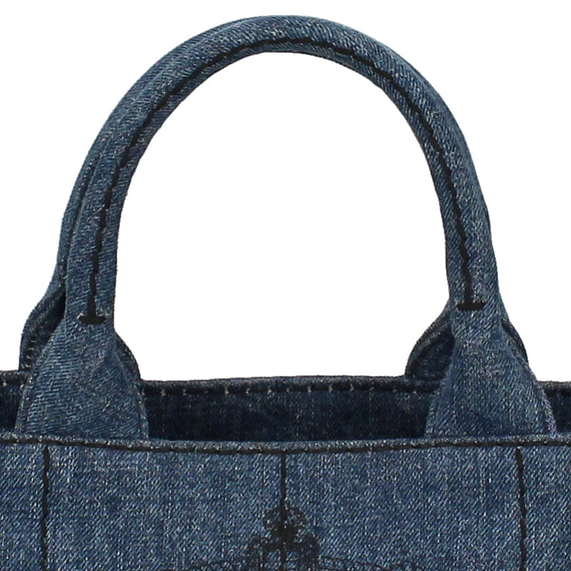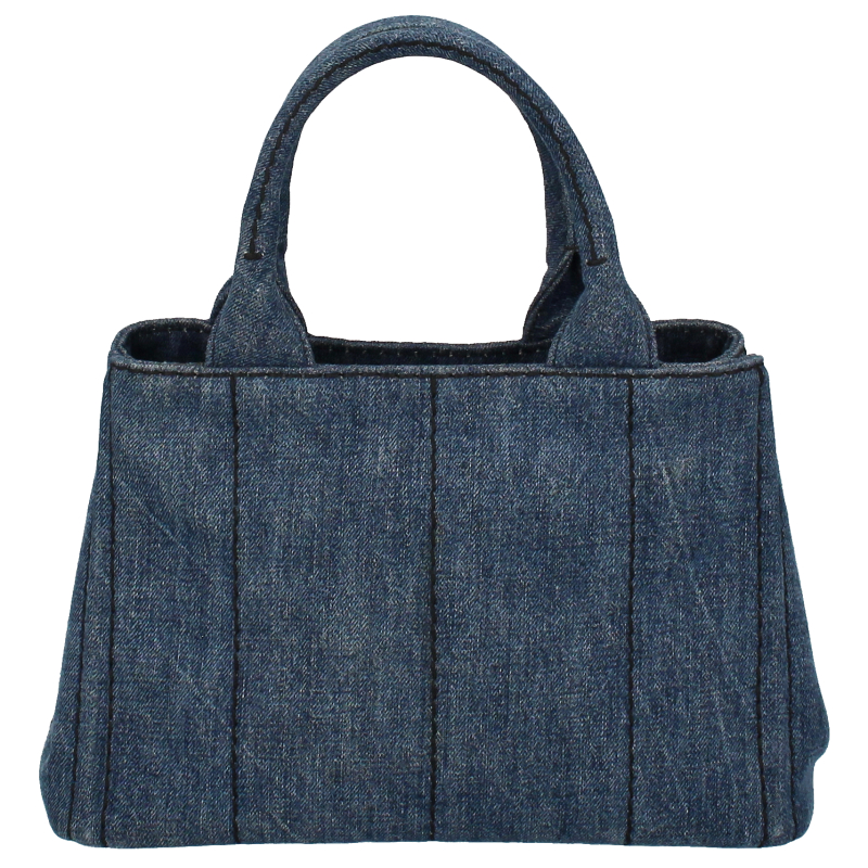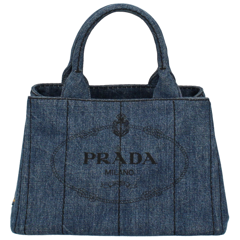USED品。シンプルナチュラルなデザインが魅力のプラダのカナパトート。現在も絶大な人気を誇っています。正面に大きなロゴがデザインされていてブランド主張をしています。