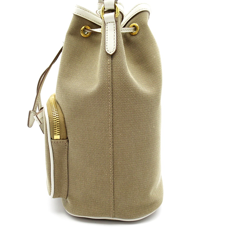 USED品。フロントに大きくデザインされたロゴマークが目を惹き、レザーとの組み合わせがとてもオシャレです。カジュアルなデザインながらも高級感漂う逸品です。