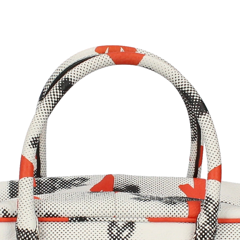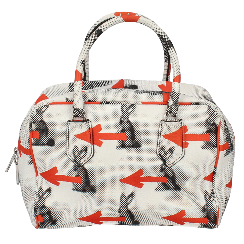 USED品。ドットシルエットのうさぎとビビッドなオレンジの矢印プリントで、ファッションを引き立ててくれるユニークなデザインです。