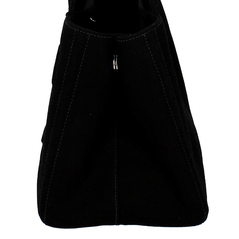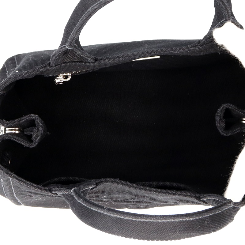 未使用品。ブラックの無地キャンバスにエンボス加工されたブランドロゴがアクセントになったカナパトートバッグ。付属のショルダーで斜め掛けにもなる2way。通勤通学から普段使いとマルチに大活躍です。