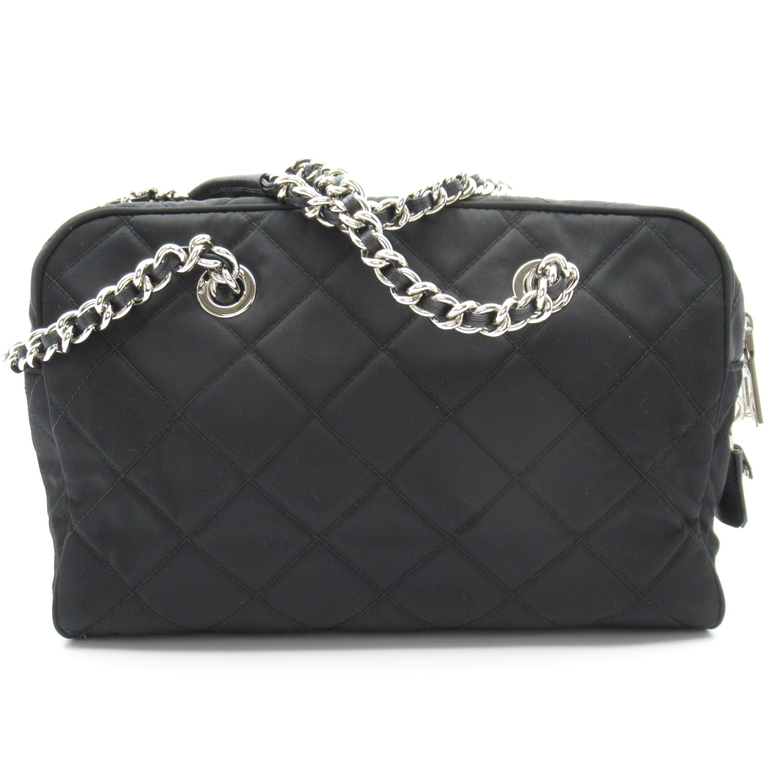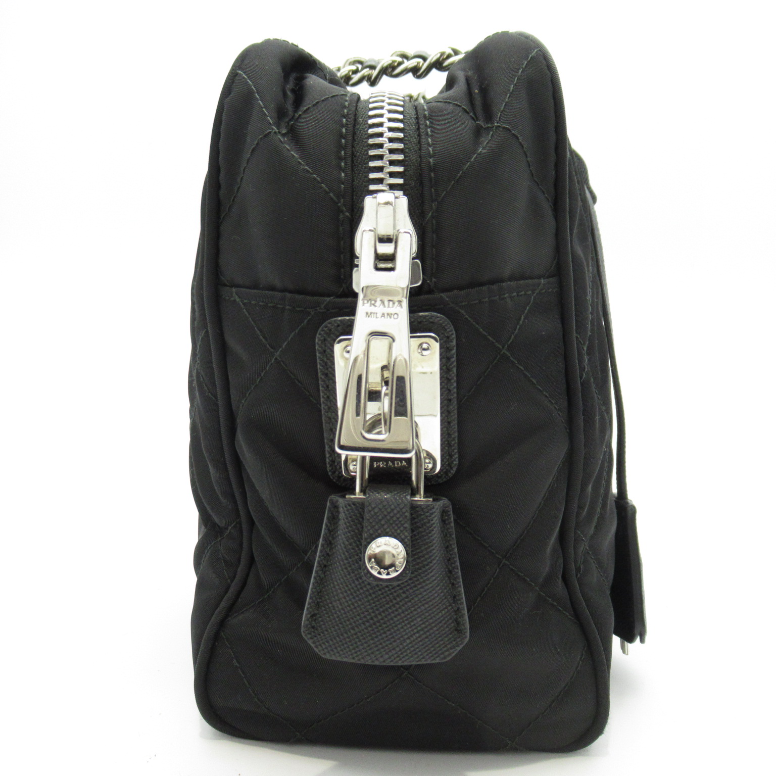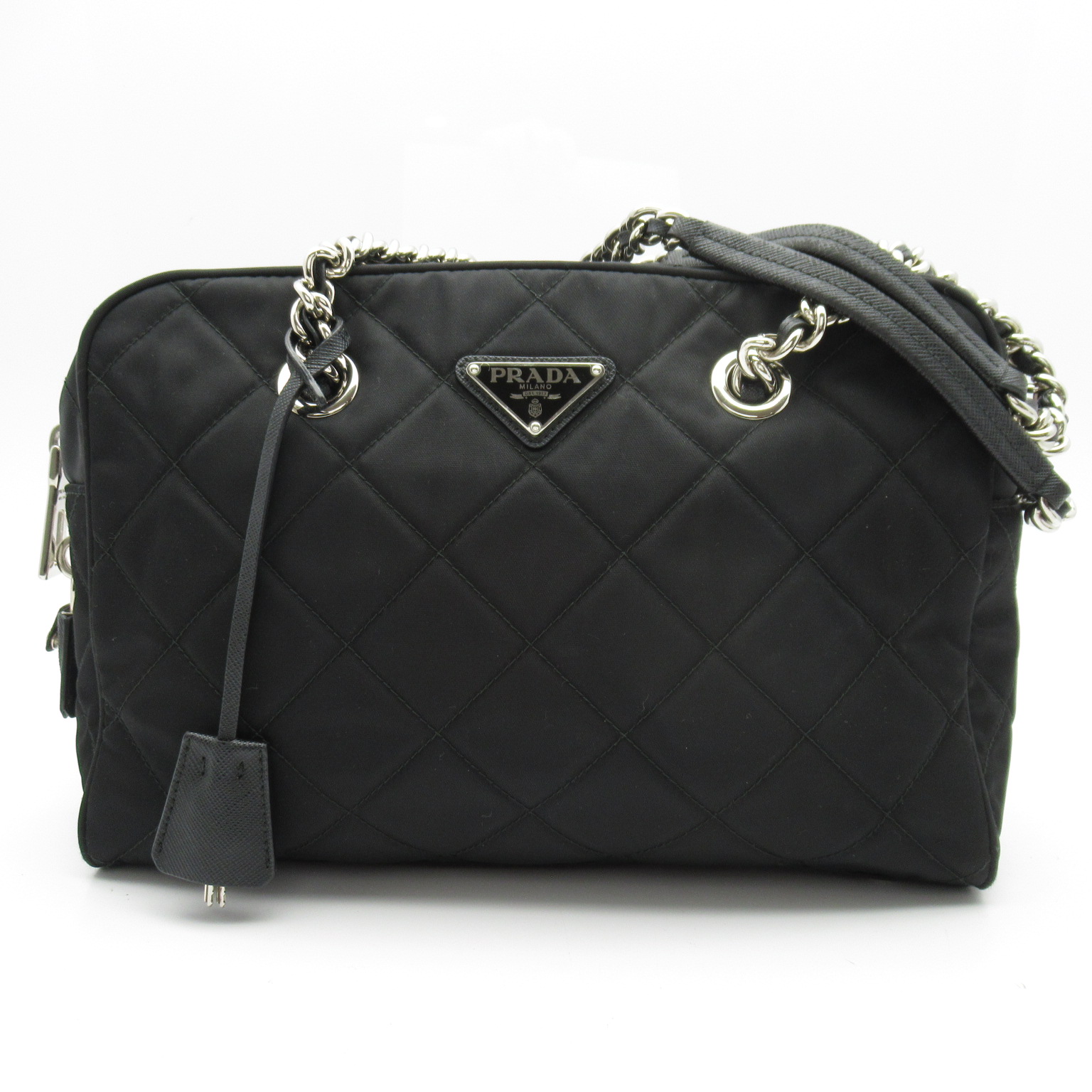 USED品。ダイヤモンドキルトのナイロンファブリックが女性らしく可愛らしいプラダのバッグ。普段使いはもちろん、フォーマルからカジュアルまでマルチに使える優秀なバッグです。