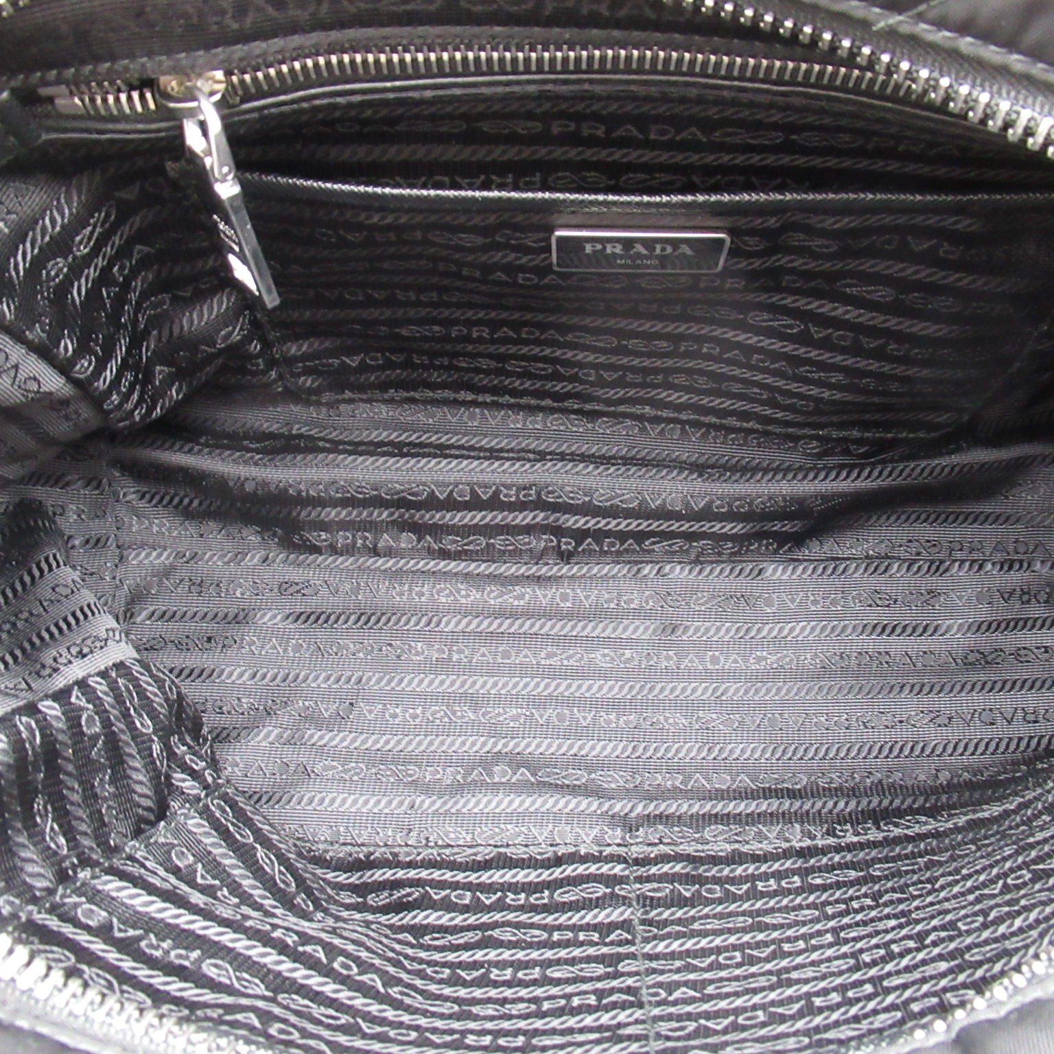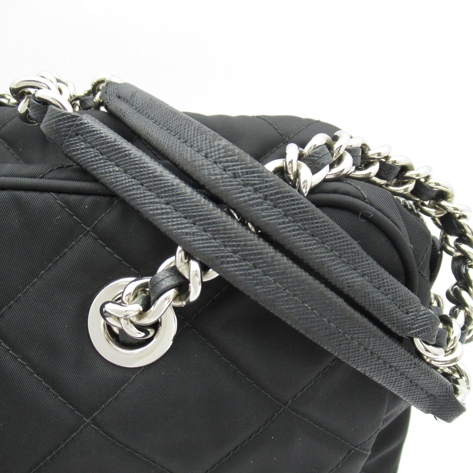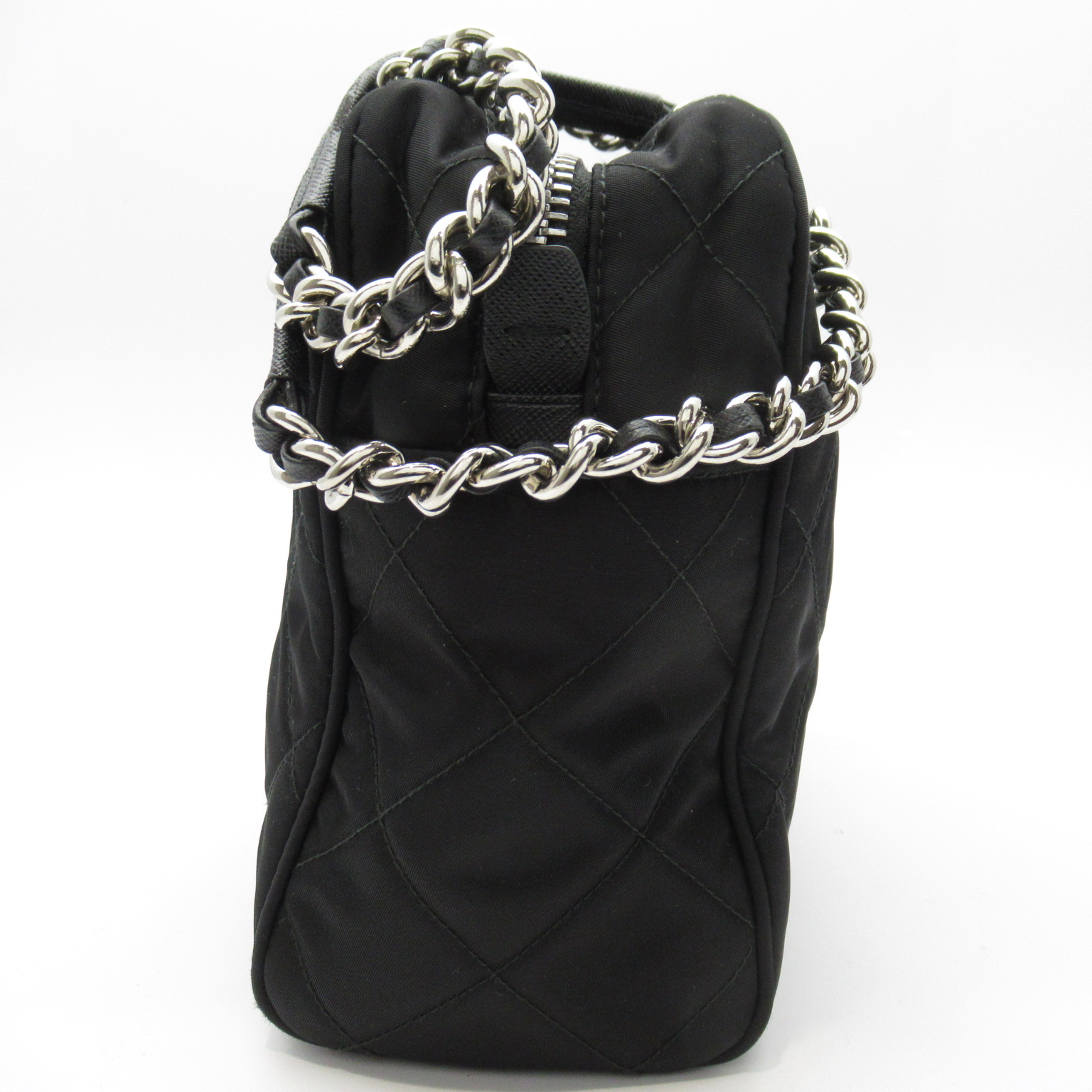 USED品。ダイヤモンドキルトのナイロンファブリックが女性らしく可愛らしいプラダのバッグ。普段使いはもちろん、フォーマルからカジュアルまでマルチに使える優秀なバッグです。
