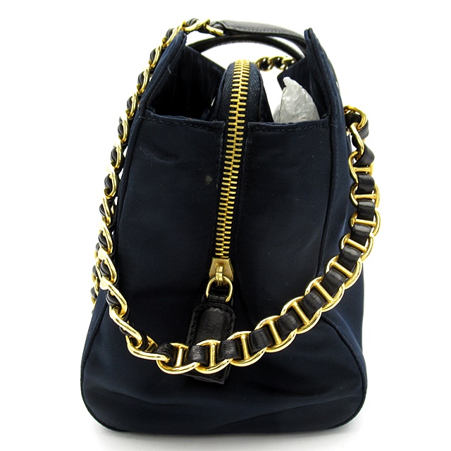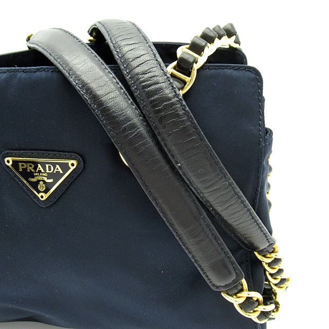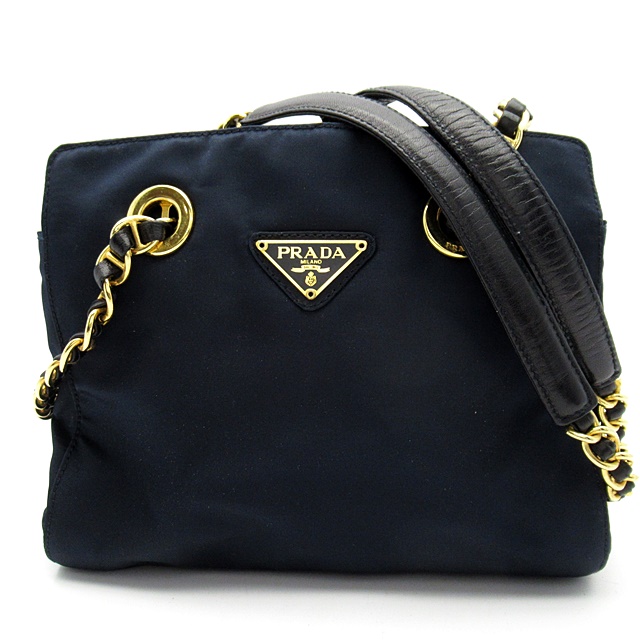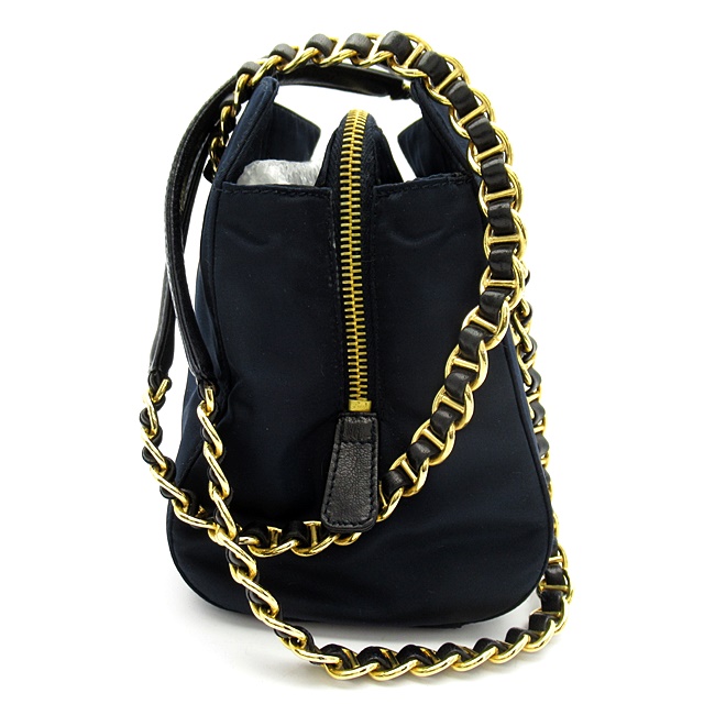 USED品。ナイロン素材とレザーを組み合わせたチェーンショルダーバッグ。普段使いにおすすめです。