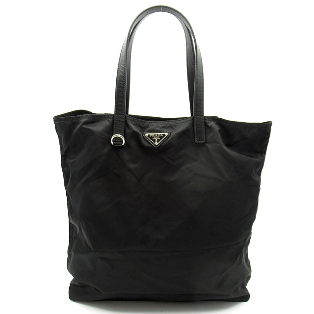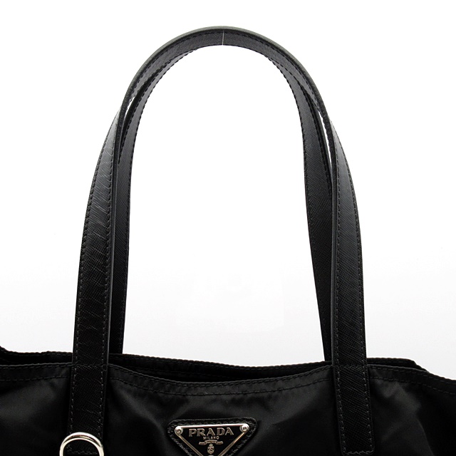 USED品。軽くて丈夫なので人気の高いプラダのナイロントートバッグです。サフィアノレザー仕様です。