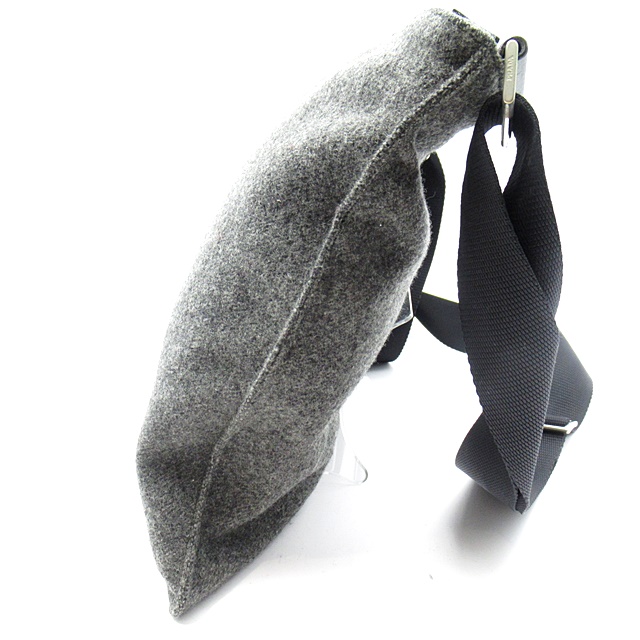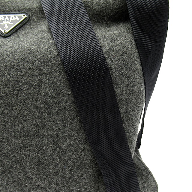 USED品。ウールでできた温かみのあるショルダーバッグです。プラダのロゴがブランドアピール抜群です。