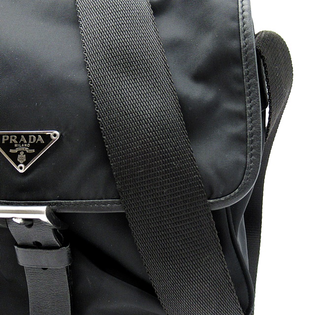 USED品。ナイロン素材のカジュアル感を保ちつつ、スクエアフォルムでカッチリとした印象を与えるショルダーバッグです。