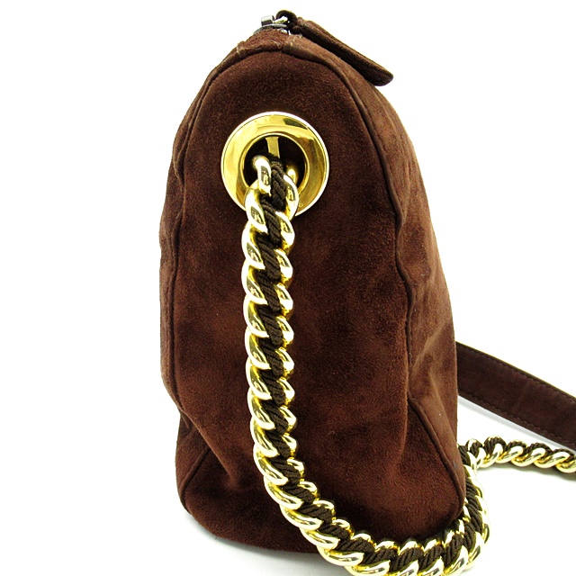 USED品。落ち着きのあるスエード素材のショルダーバッグです。エレガントにもカジュアルにもコーディネートができるデザインで、ちょっとしたお出かけに活躍してくれます。