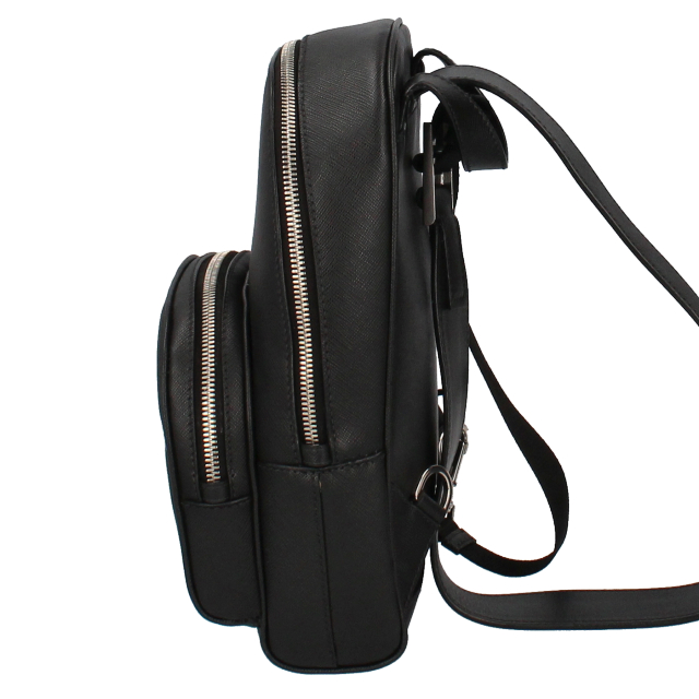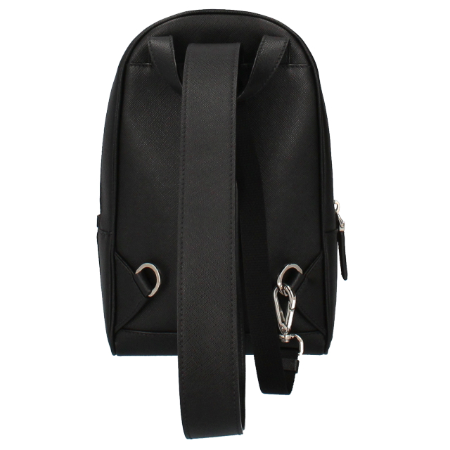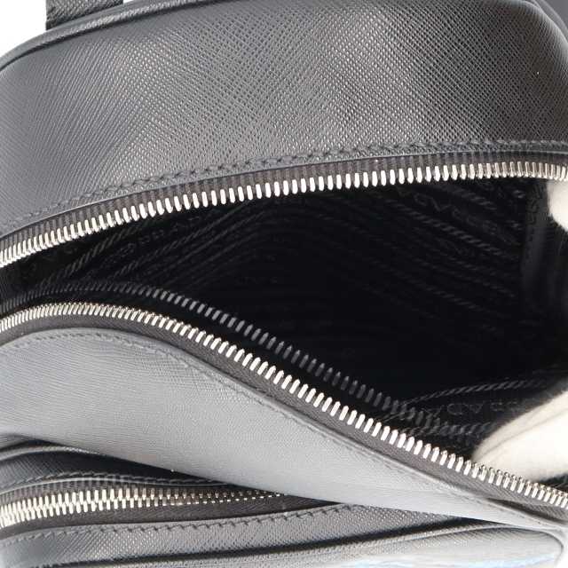 USED品。プラダならではのエレガントさを漂わせるボディバッグ。ショルダーは長さ調節が可能なだけではなく、左右どちらの肩からでも掛けられるように背面下のリングで付け替えできる仕様になっています。