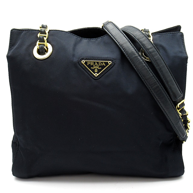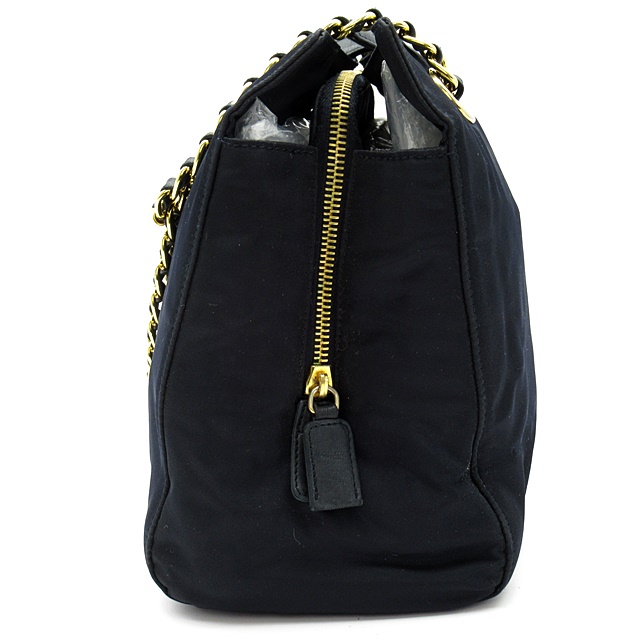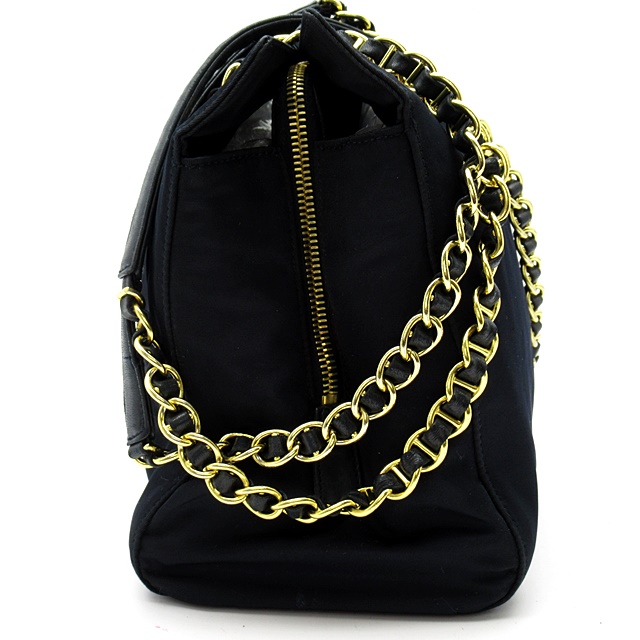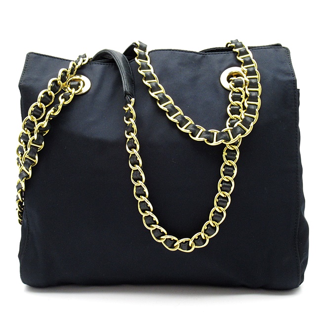 USED品。ナイロン素材のカジュアル感を保ちつつ、持ち手のチェーンでカッチリとした印象を与えるショルダーバッグ。