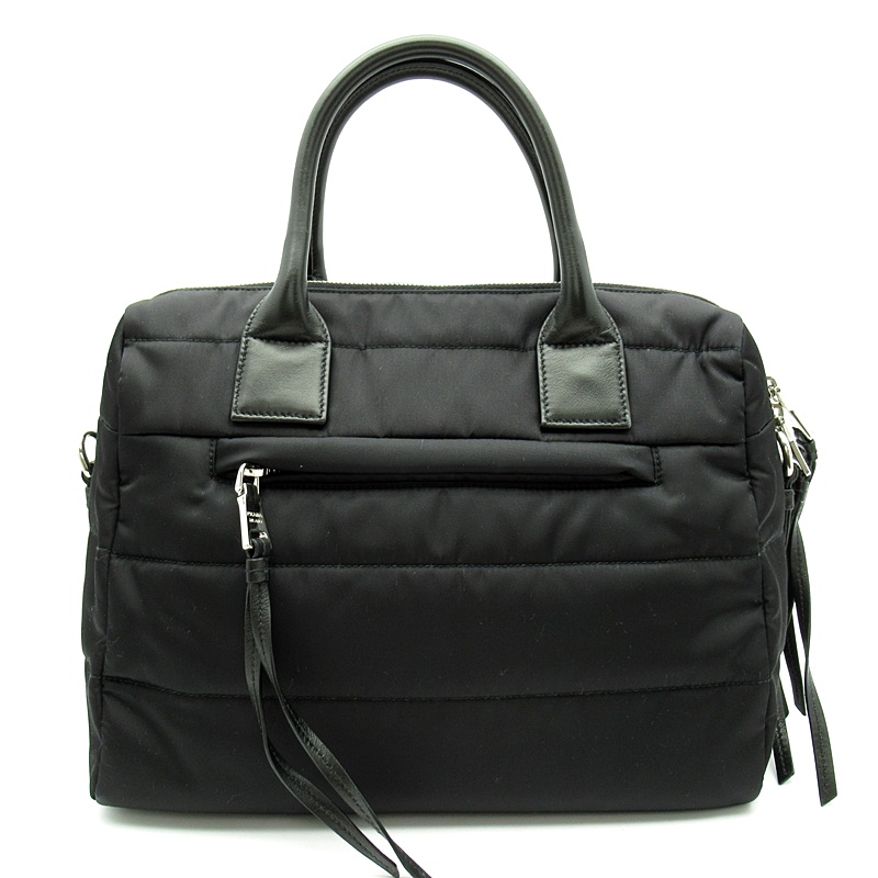 USED品。ブラックのキルティングにトレードマークのロゴプレートがオシャレな2WAYトートバッグです。多彩なポケットも付いて収納力抜群。軽量で水や汚れにも強く、通勤通学から普段使いとマルチに大活躍です。