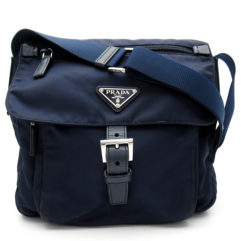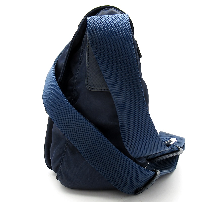 USED品。ナイロン素材のカジュアル感を保ちつつ、スクエアフォルムでカッチリとした印象を与えるショルダーバッグです。