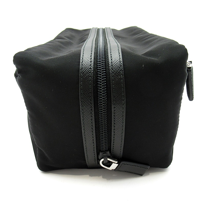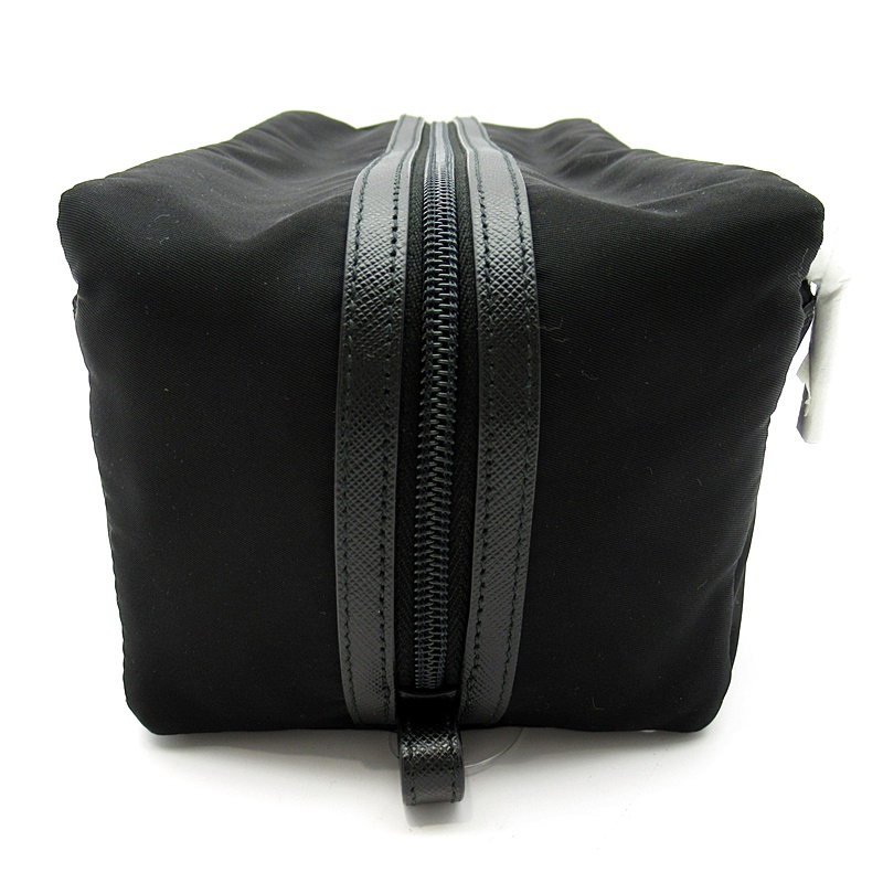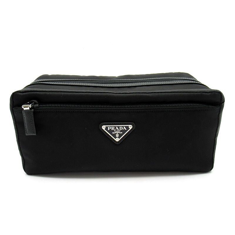 USED品。海から回収されたプラスチックごみや漁網、繊維くずを再利用、浄化して作られた革新的な素材であるRe-Nylonを使用したスクエア型のポーチ。マチもたっぷりあり、旅行用の収納としても大活躍します。