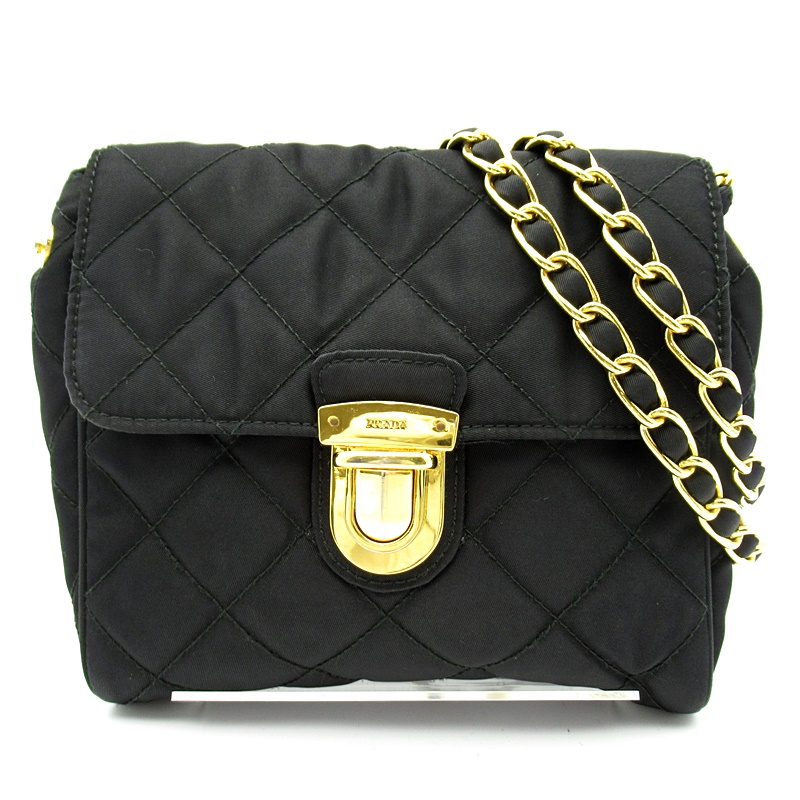 USED品。コンパクトなショルダーバッグ。キルティングのようなデザインが可愛らしく、ナイロン素材なのでとても軽いです。