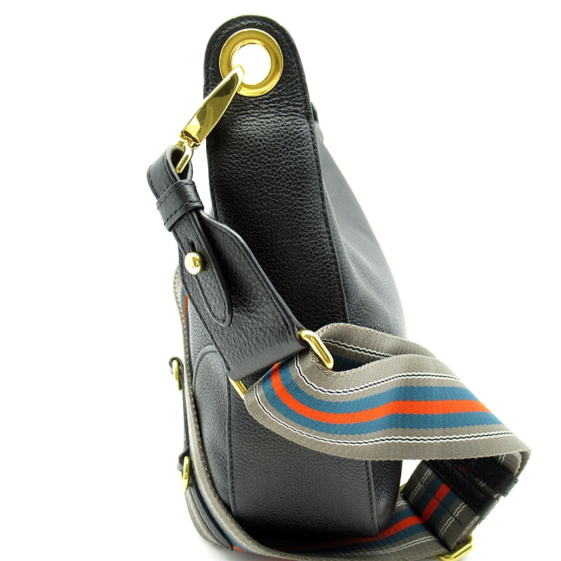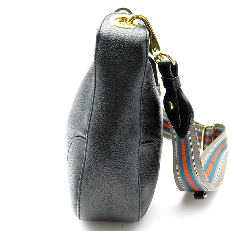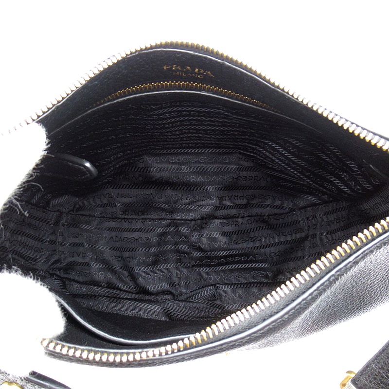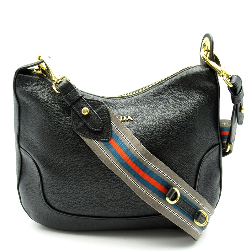 USED品。ストライプのショルダーがアクセントになったプラダのショルダーバッグ。小ぶりながらもマチがしっかりあるため荷物が多い方にもおすすめです。