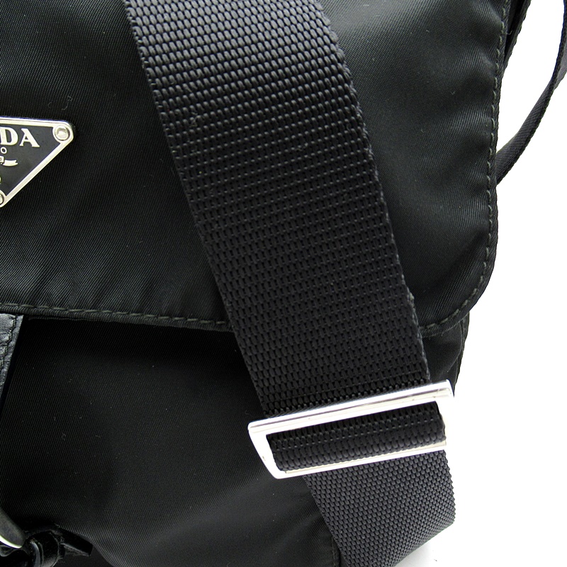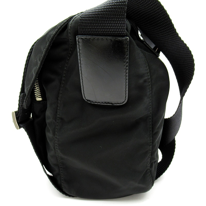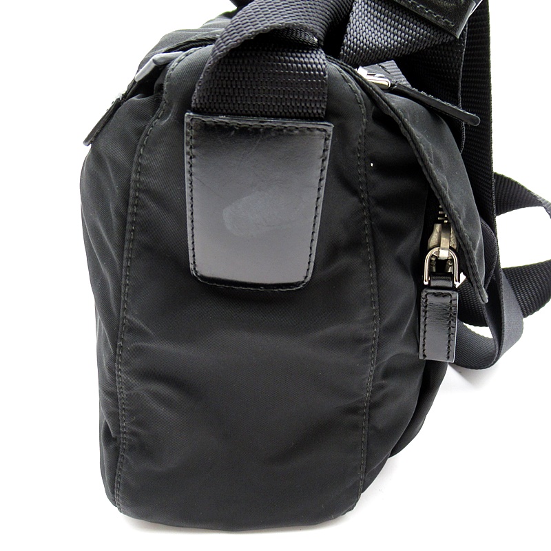 USED品。ナイロン素材のカジュアル感を保ちつつ、スクエアフォルムでカッチリとした印象を与えるショルダーバッグです。シンプルですがポケットが豊富で普段使いにピッタリ。