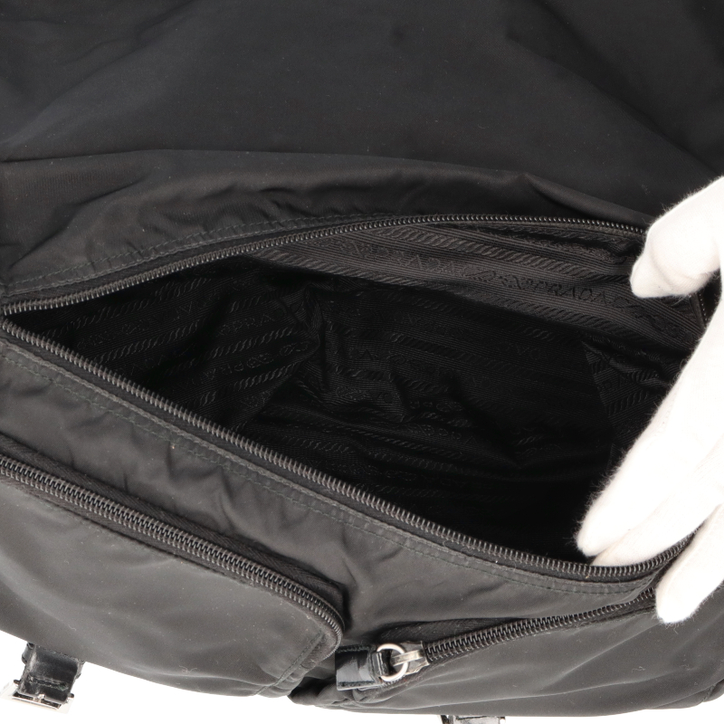 USED品。ナイロン素材のカジュアル感を保ちつつ、スクエアフォルムでカッチリとした印象を与えるショルダーバッグ。