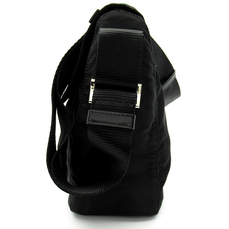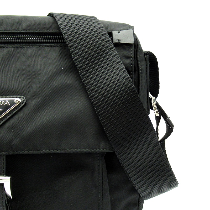 USED品。ナイロン素材のカジュアル感を保ちつつ、スクエアフォルムでカッチリとした印象を与えるショルダーバッグです。シンプルですがポケットが豊富で普段使いにピッタリ。