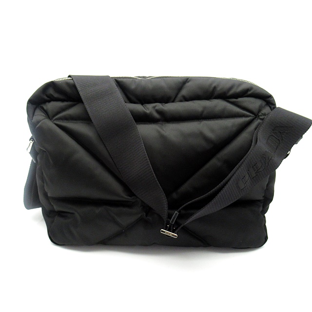USED品。リナイロン素材を使用したキルティングデザインのボディにブランドロゴがアクセントになったショルダーバッグ。内側メインコパーメントにファスナー式ポケットを備えた収納スペース。