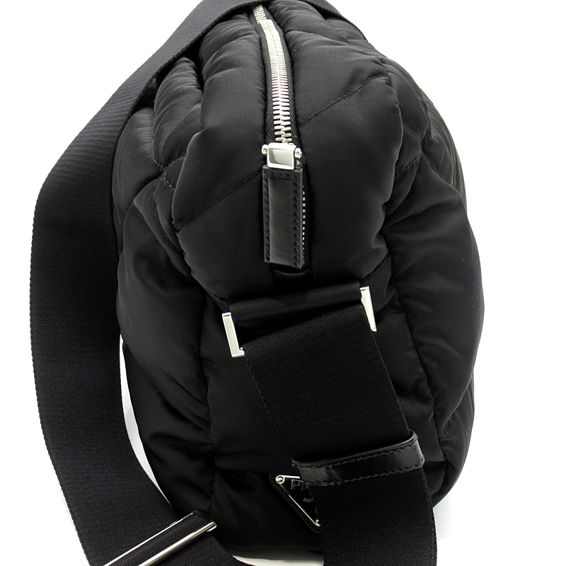 USED品。リナイロン素材を使用したキルティングデザインのボディにブランドロゴがアクセントになったショルダーバッグ。内側メインコパーメントにファスナー式ポケットを備えた収納スペース。