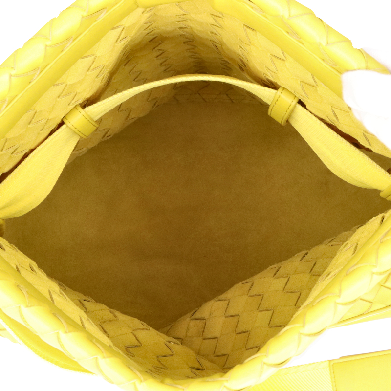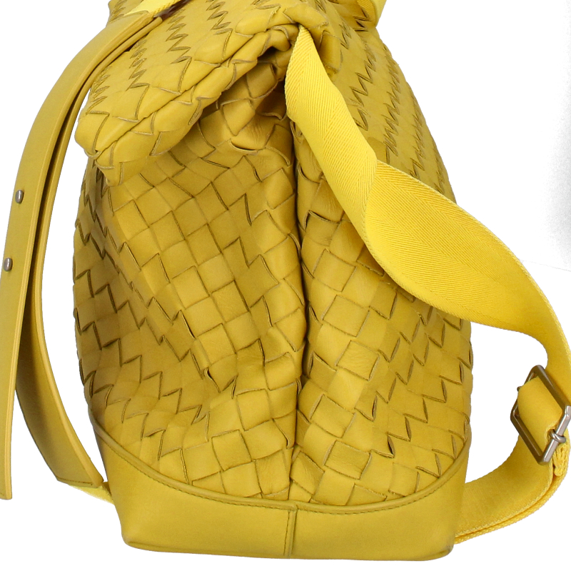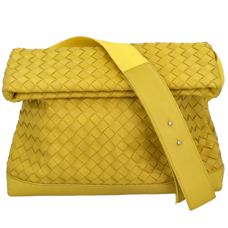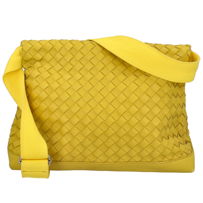 USED品。ボッテガヴェネタの代名詞とも言えるイントレチャートが施されたショルダーバッグです。イエローのレザーが特徴的なショルダーバッグです。