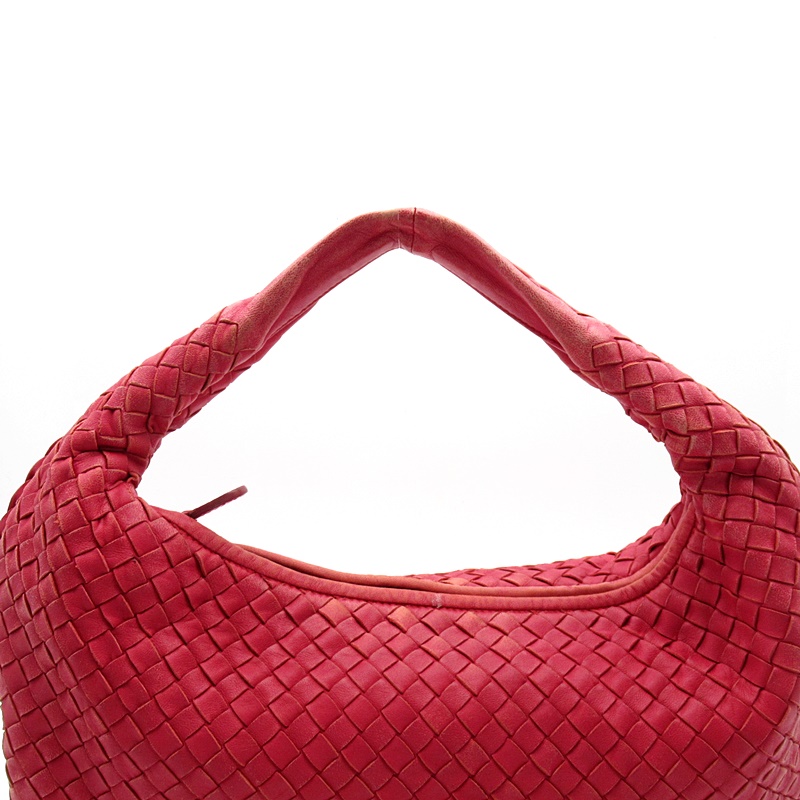 USED品。ボッテガヴェネタの代名詞とも言えるイントレチャートが施されたバッグです。ピンクカラーが可愛らしく、お勧めです。