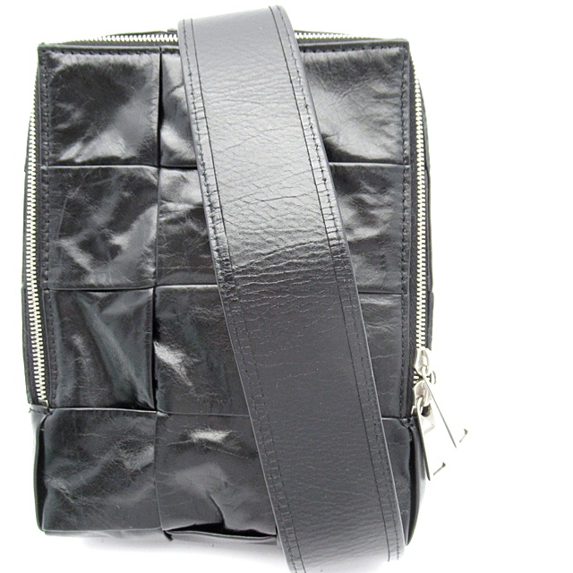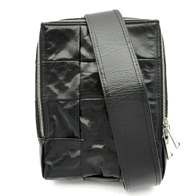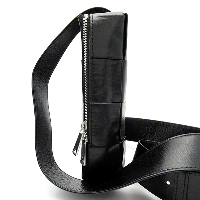 USED品。イントレチャートレザーのミニスリングバッグ。一目でボッテガ ヴェネタと分かるルックスと、必要最低限の荷物を持ち運ぶのに丁度良いサイズ感で使い勝手は抜群です。