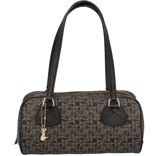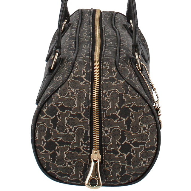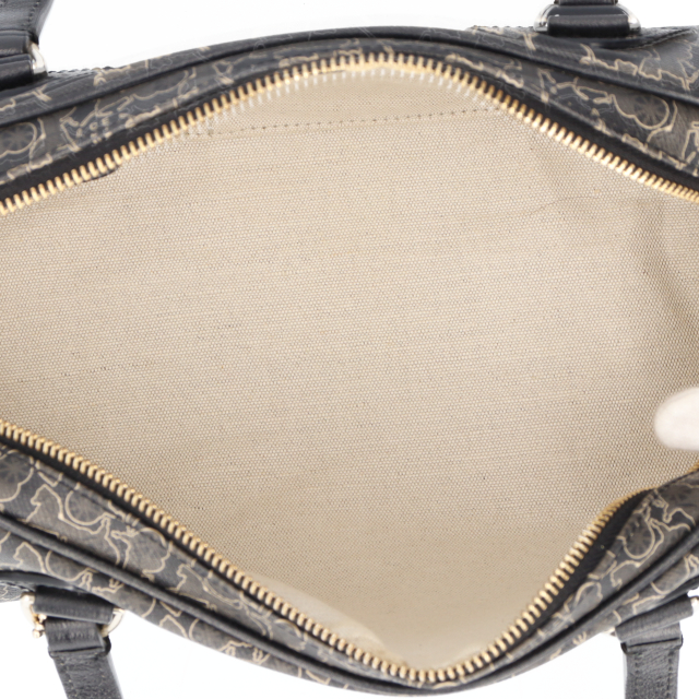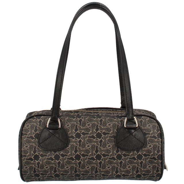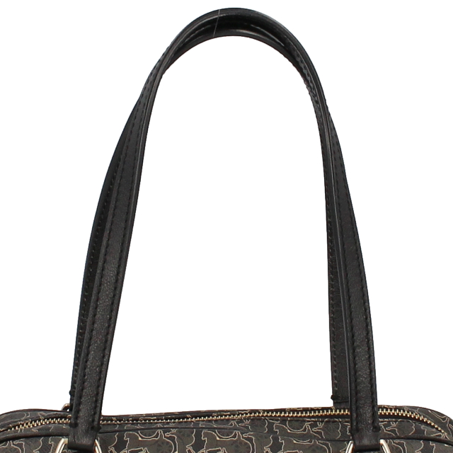 USED品。2輪馬車が連なったようなモノグラム調のデザインが特徴のサルキーラインのハンドバッグです。小ぶりサイズはデイリーユースにも最適です。