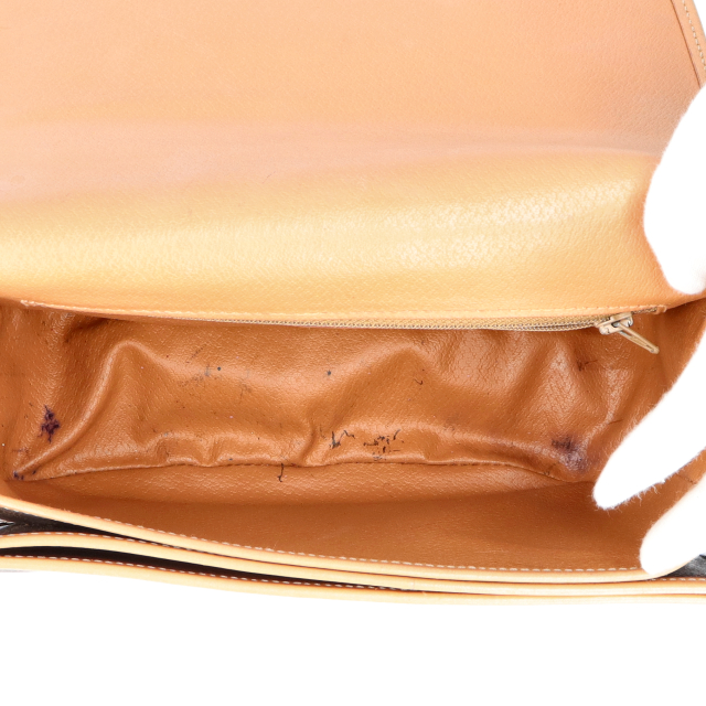 ヴィンテージ品の為、多少使用感があります。革に黒ずみがあります。フラップ内側と内部にペン跡があります。金具に変色があります。